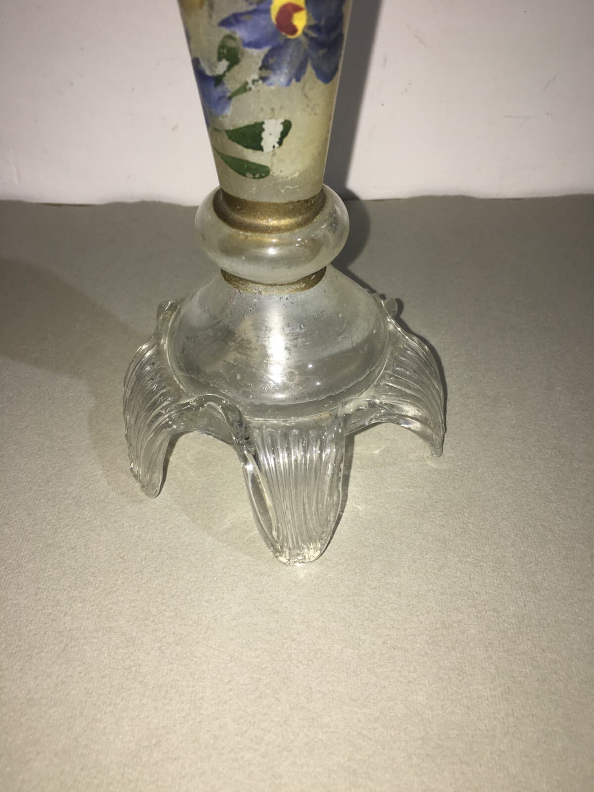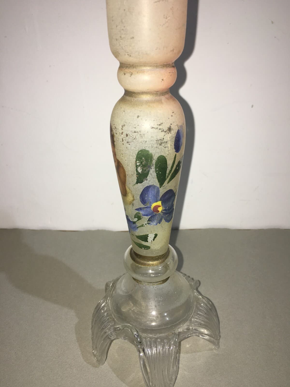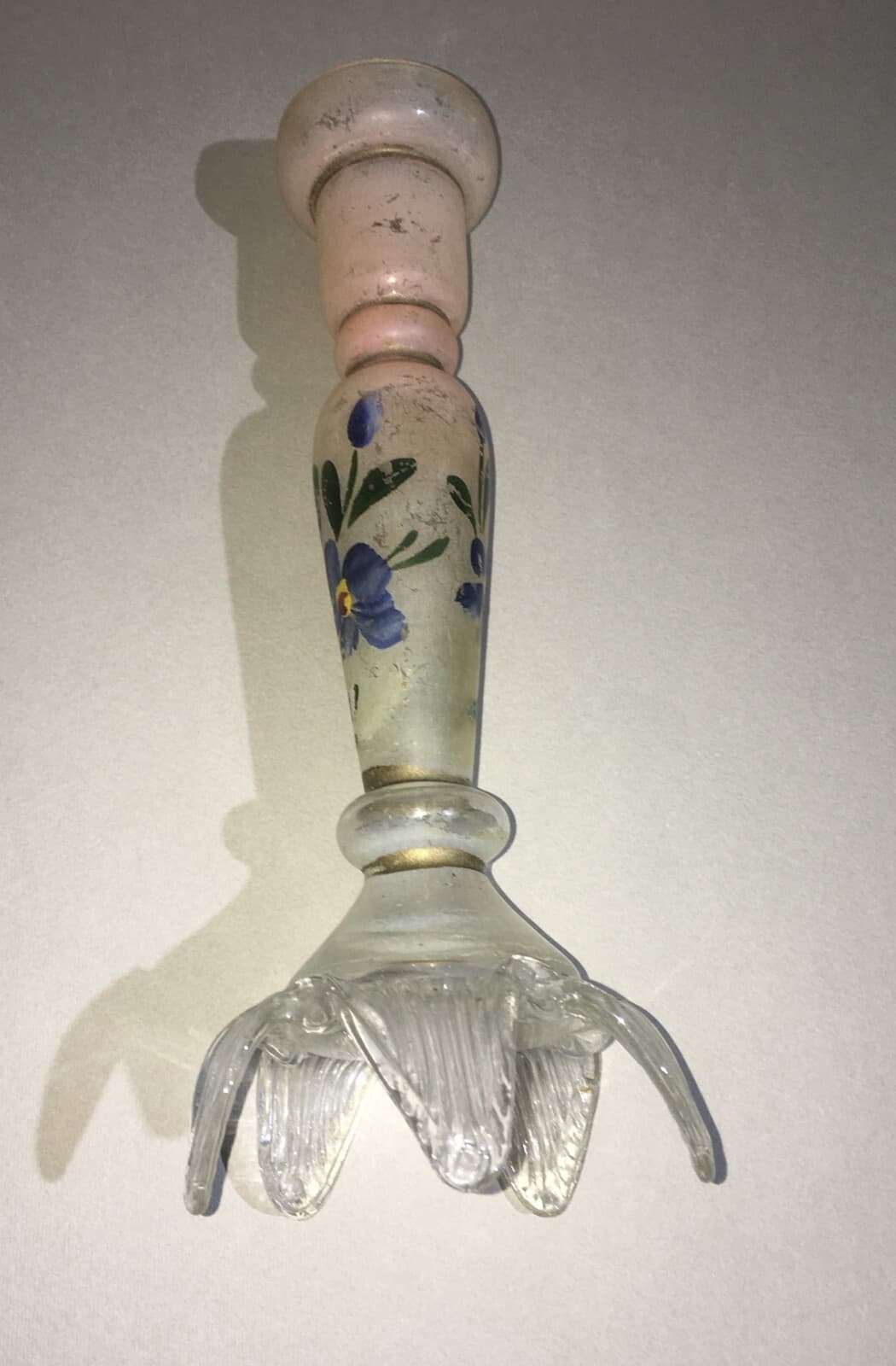 Candeliere In Vetro Decorato A Mano Con Motivi Floreali E Angioletto