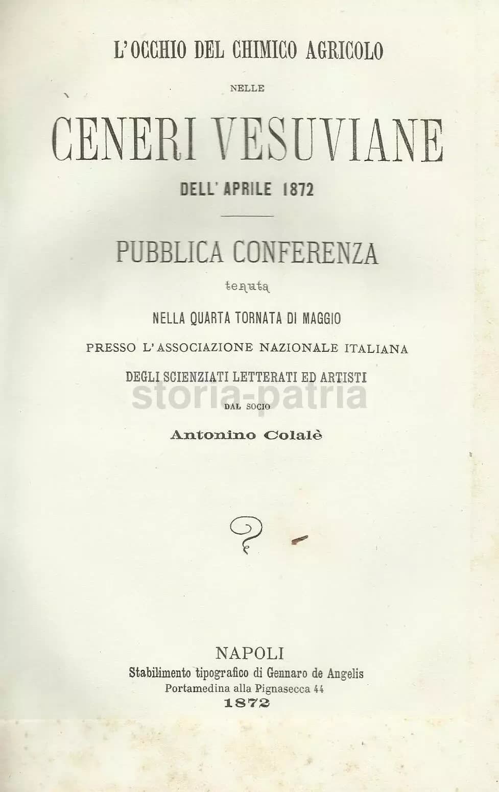 Napoli: L'Occhio Del Chimico Agricolo Nelle Ceneri Vesuviane Colalè, Palmieri, 1872