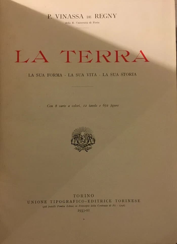 P. Vinassa De Regny La Terra: La Sua Forma, La Sua Vita, La Sua Storia (1933)
