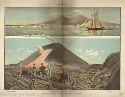 Napoli, Vesuvio, Eruzione Del 1895. Veduta Del Golfo Di Napoli, Antica Stampa.