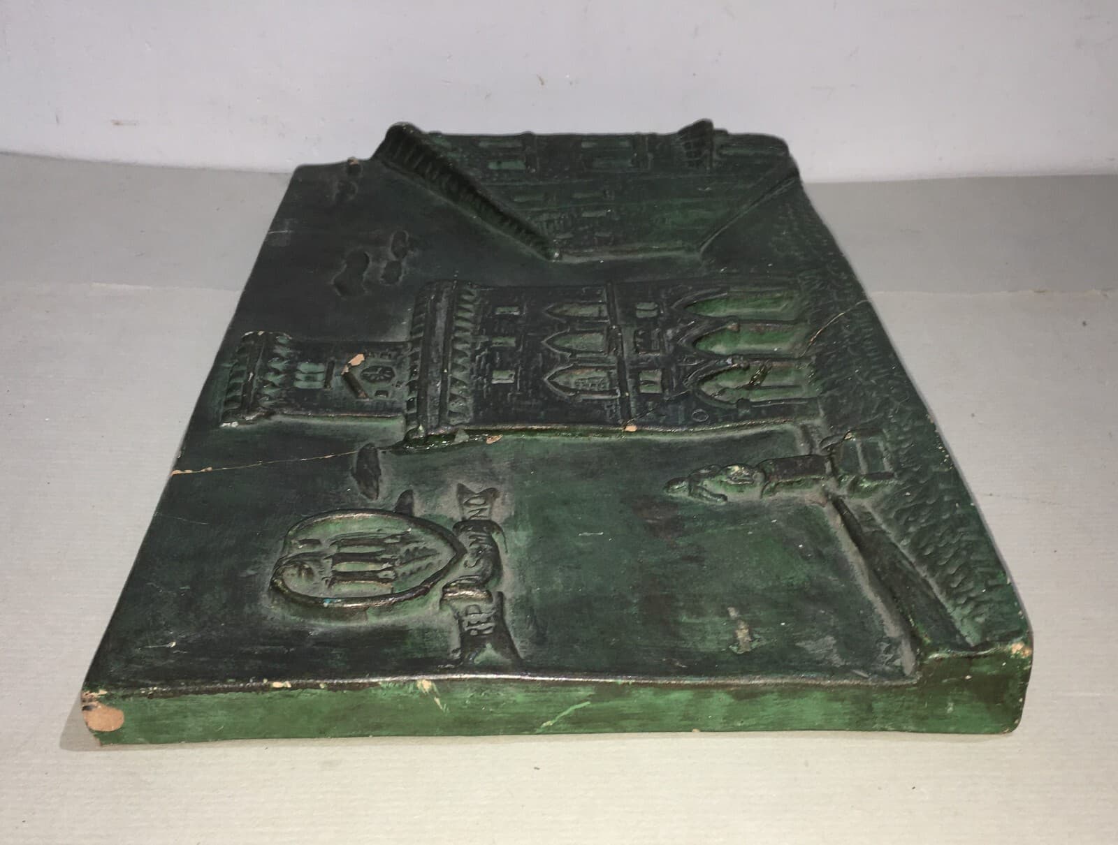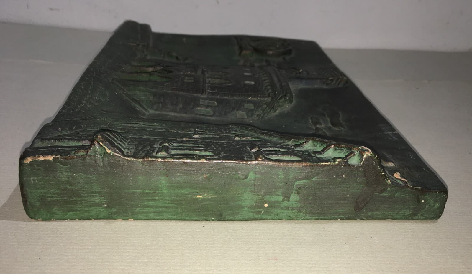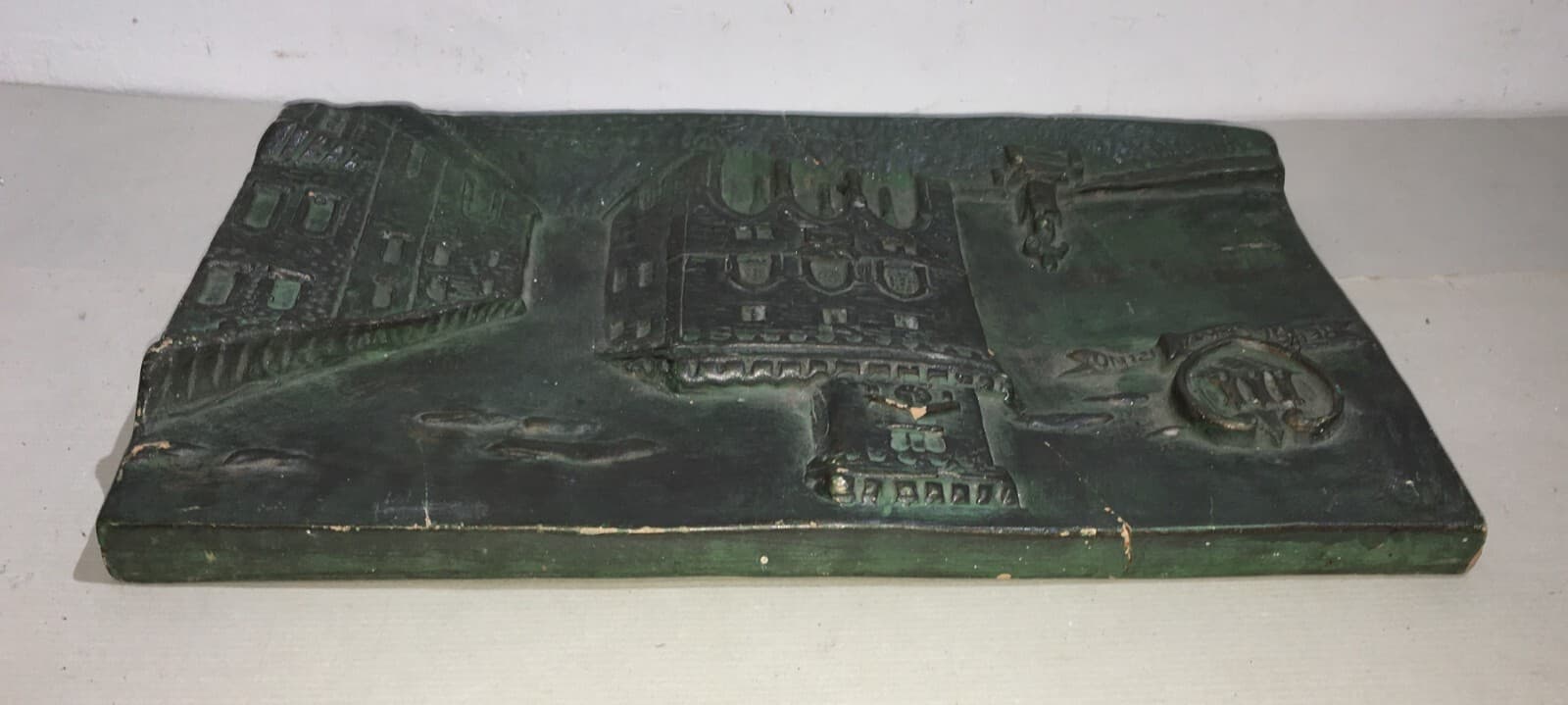 Placca Decorativa In Ceramica Patinata Bronzo, San Marino, Veduta Con Stemma