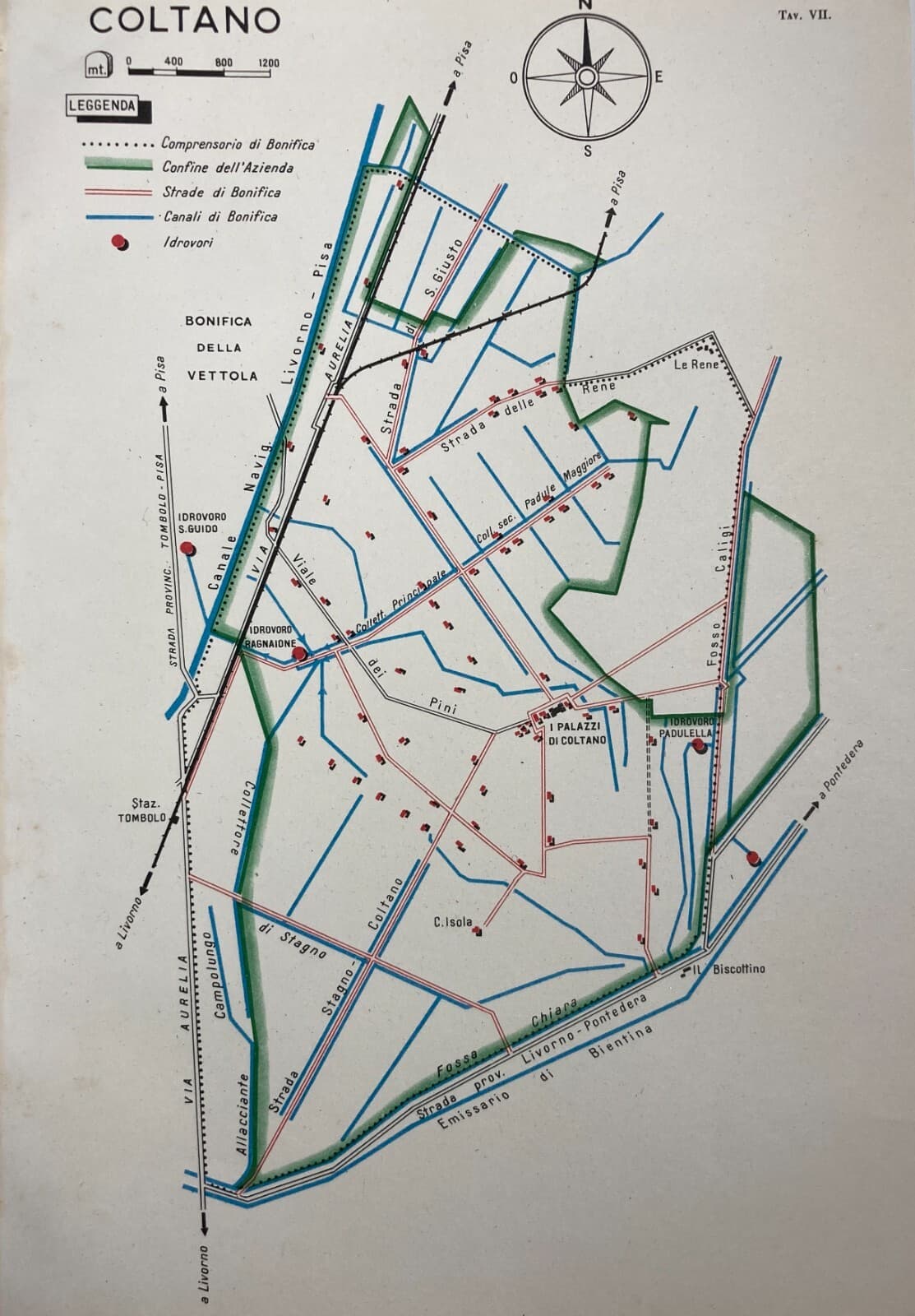 Idraulica, Bonifiche, Toscana: Coltano, Bonifica Della Vettola Mappa Topografica