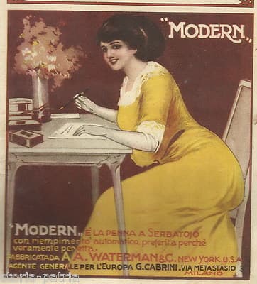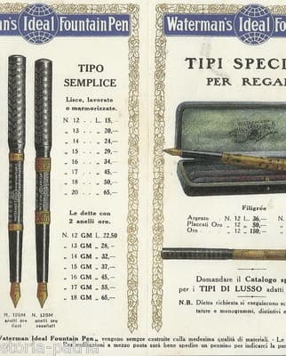 Scrittura, Penne Stilografiche Waterman'S Ideal, Hardtmuth Milano, Pubblicità d'Epoca