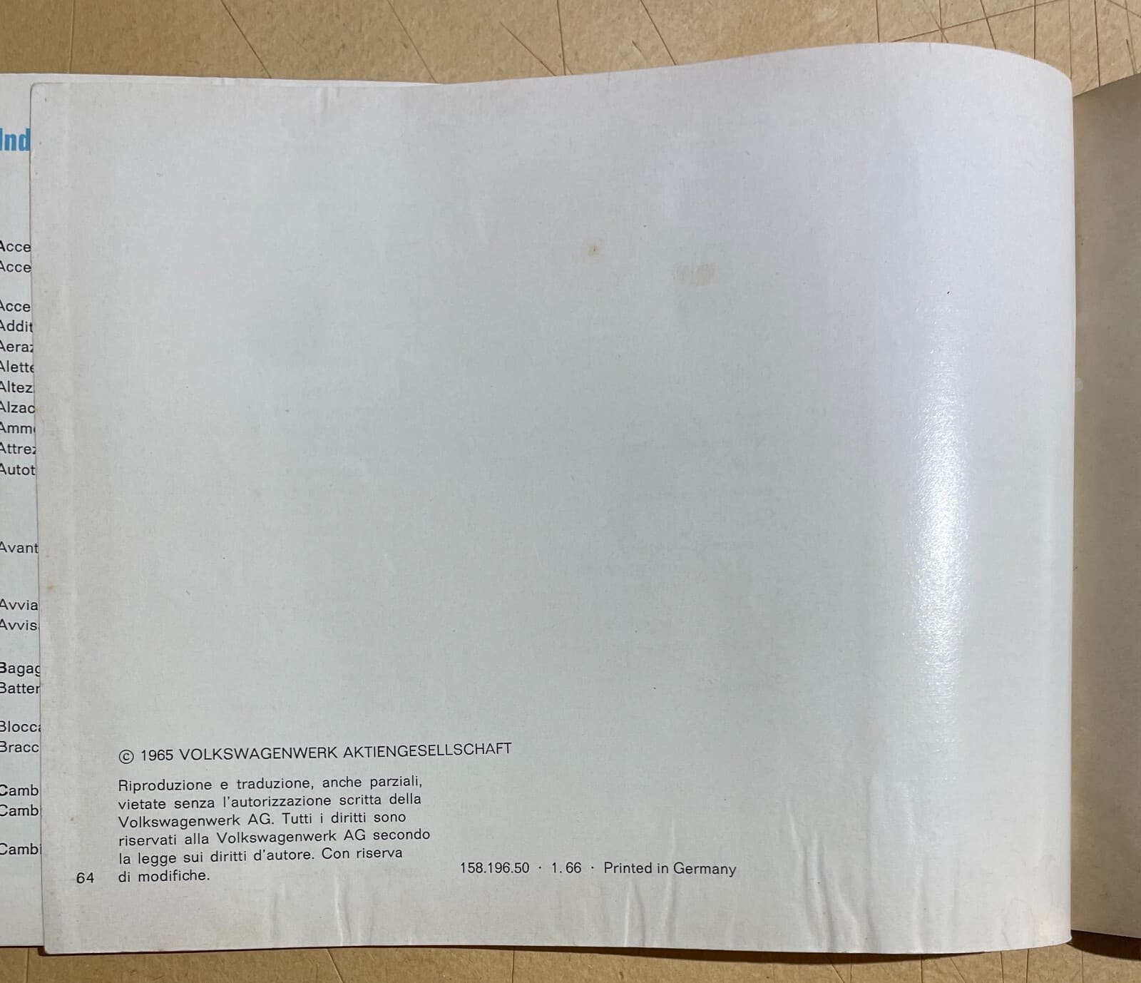 Libretto Uso E Manutenzione Volkswagen 1600, 1965