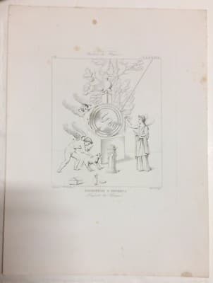 Arte Antica: Decorazione Pompeiana, Allegorie, Drago, Cavalli. Antica Litografia.
