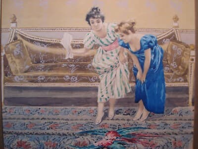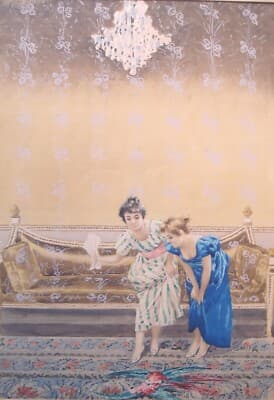 Gian Gianni (attr.) Veduta d'Interno Con Gentildonne Tempera Su Carta