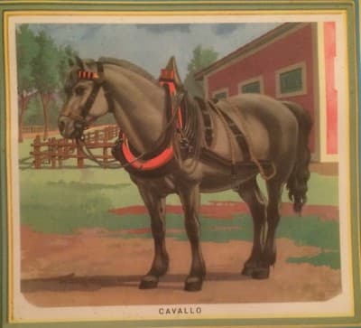 Cavallo In Un Paesaggio Rurale, Stampa A Colori Della Metà Del Novecento
