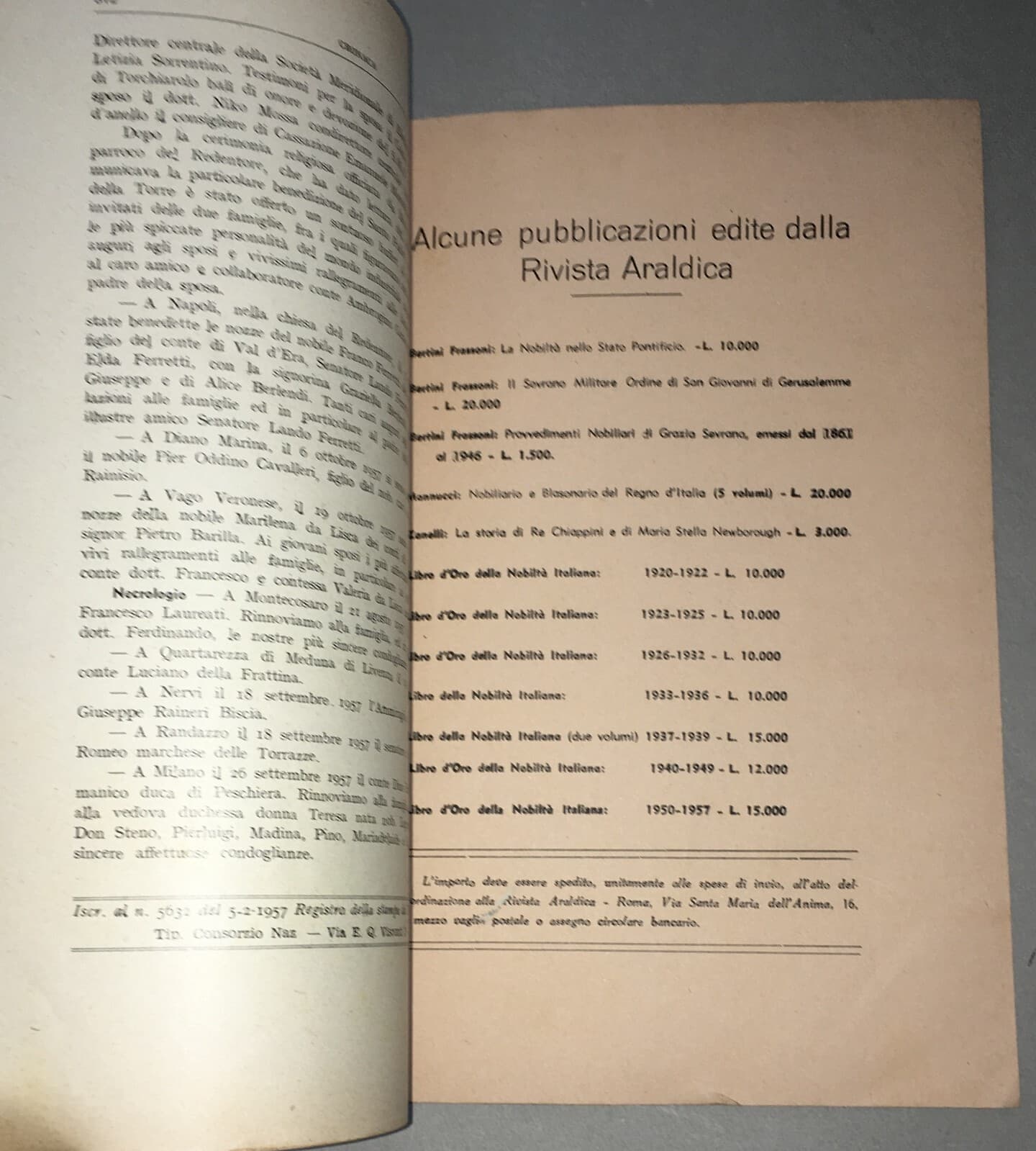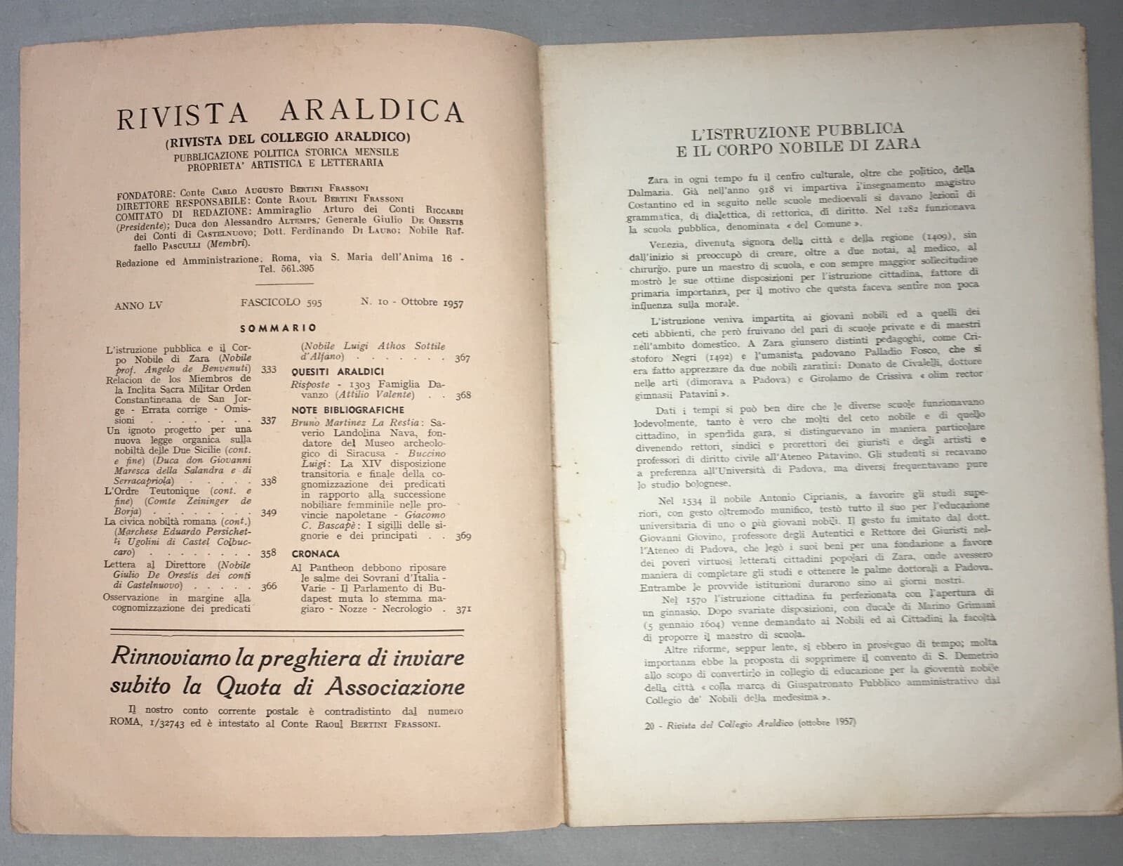Rivista Araldica: Nobiltà Romana, Due Sicilie, Zara E Ordine Teutonico (1957)