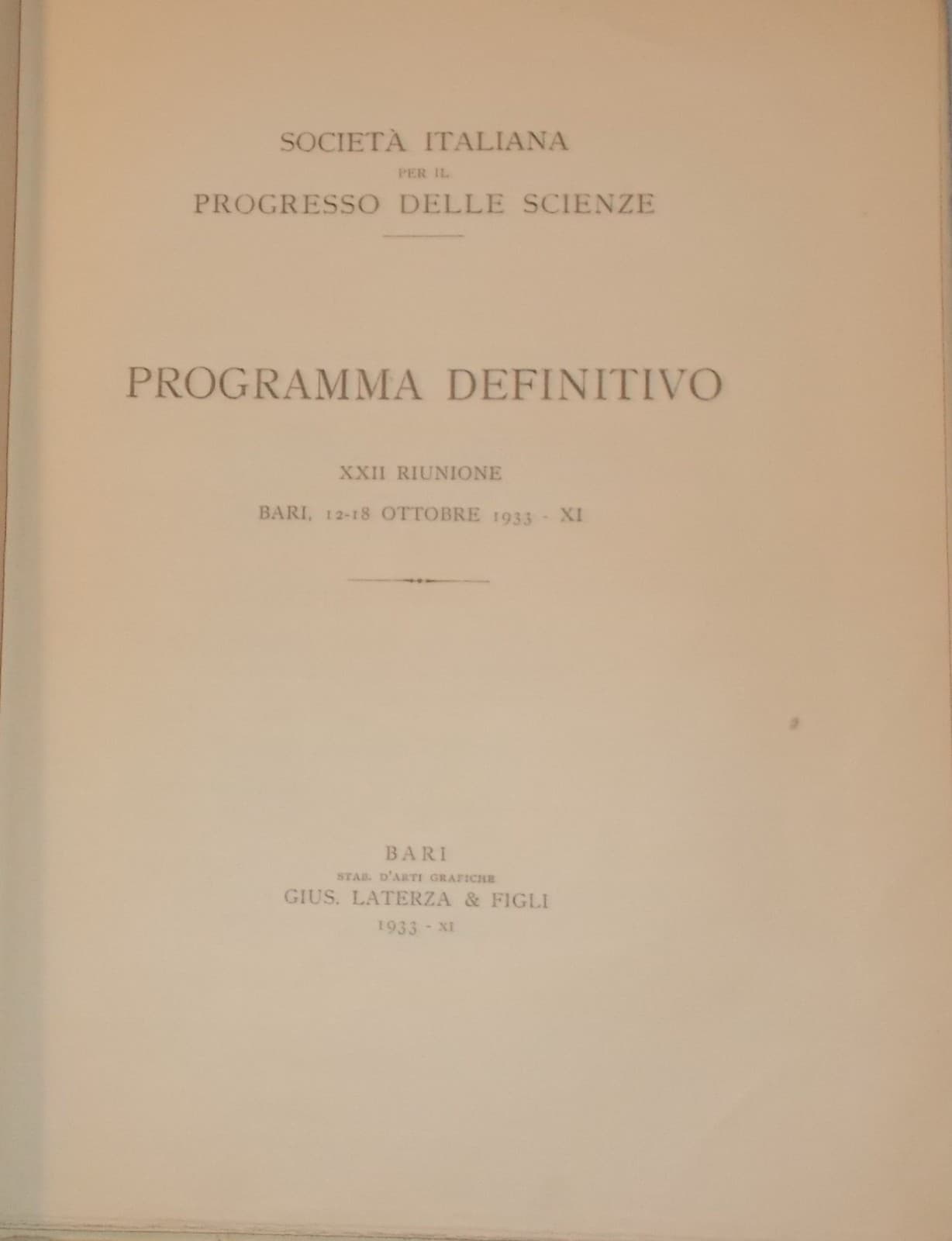 Puglia: Congresso Sips 1933, Programma Della Manifestazione (Bari, Gargano, Matera)