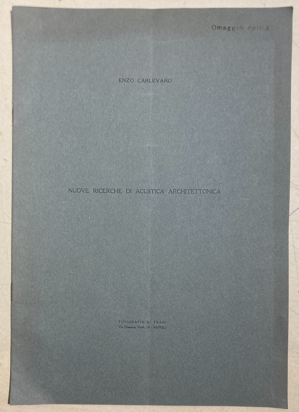 Nuove Ricerche Di Acustica Architettonica: Enzo Carlevaro, Napoli