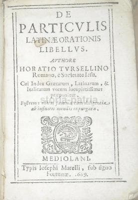 Linguistica, Grammatica E Particelle Latine: De Particulis Latinae Orationis Libellus Di Orazio Torsellino, Milano, Marelli, 1689