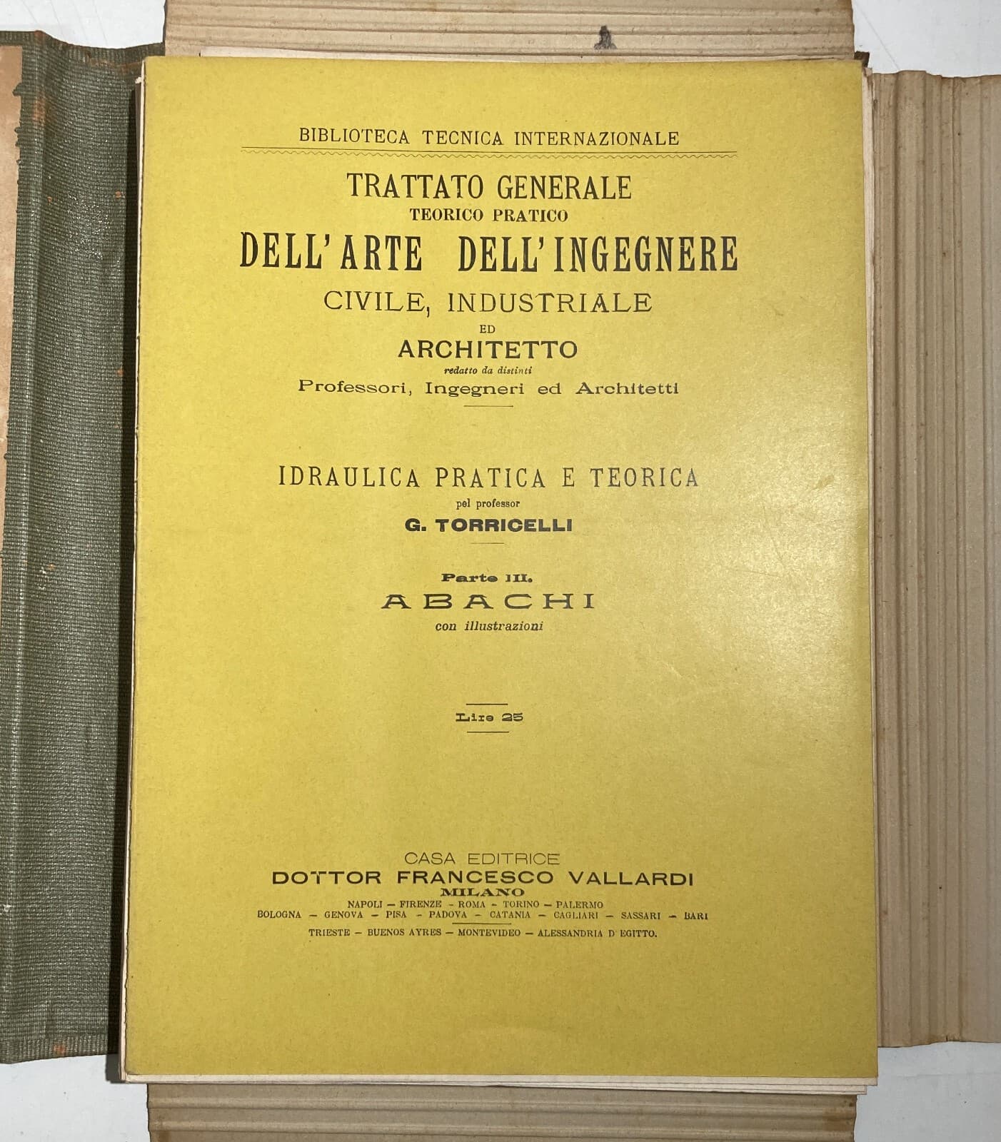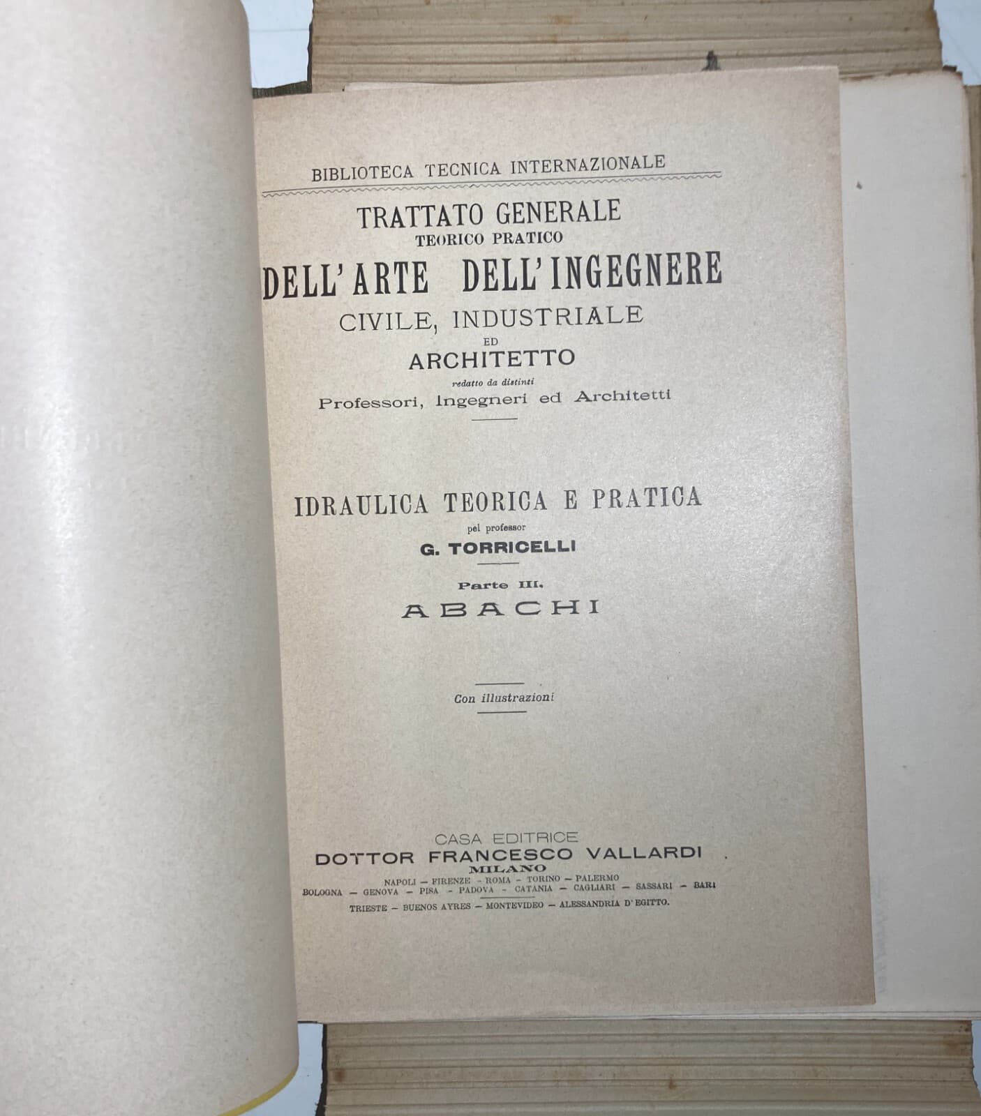 Ingegneria Idraulica. Torricelli: Abachi. Volume Illustrato Con 37 Tavole. Vallardi.