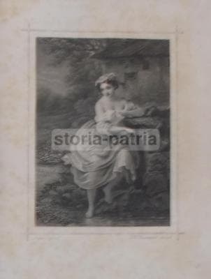 Arte: W. Baumann, André. Antica Incisione Di Giovane Donna Presso Un Ruscello, 1859