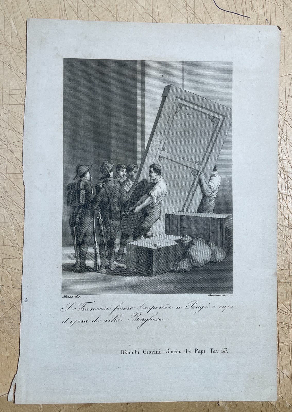 I Francesi E Le Opere d'Arte Di Villa Borghese. Antica Stampa. Incisore Santamaria