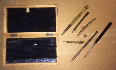 Antico Compasso Da Disegno Con Accessori In Astuccio Ligneo, 1915
