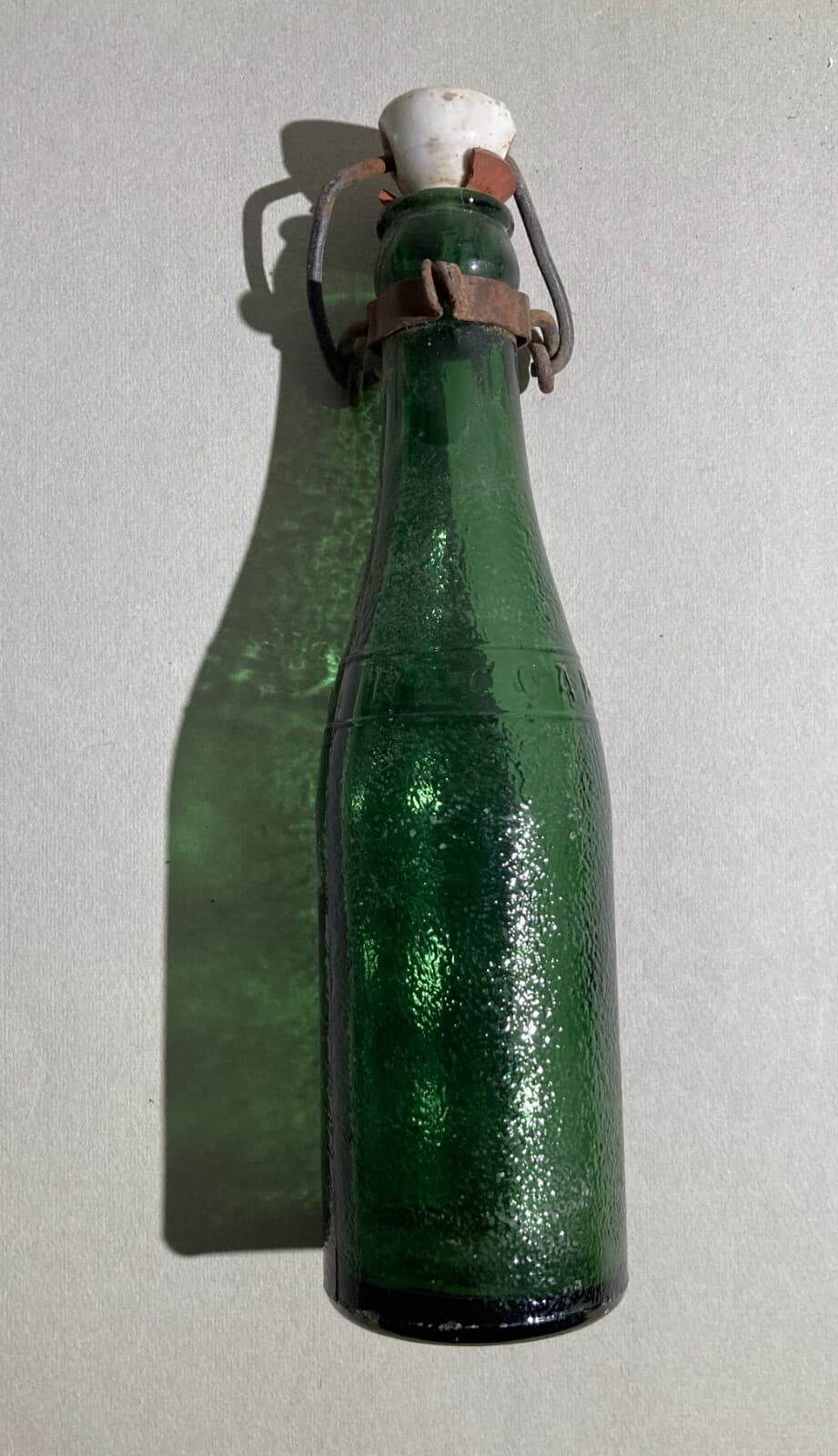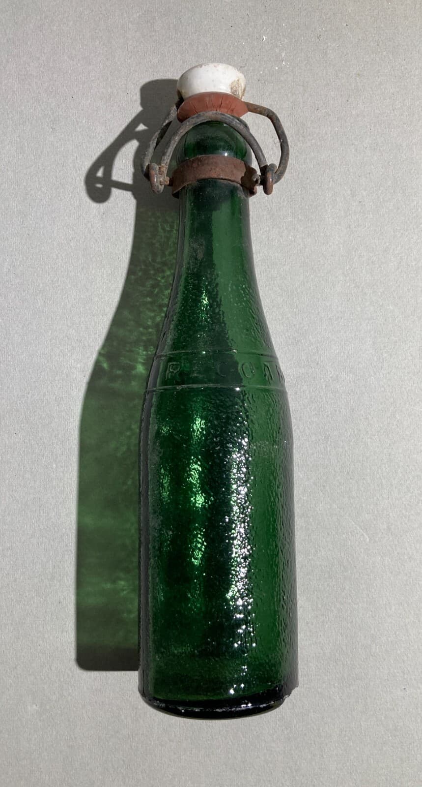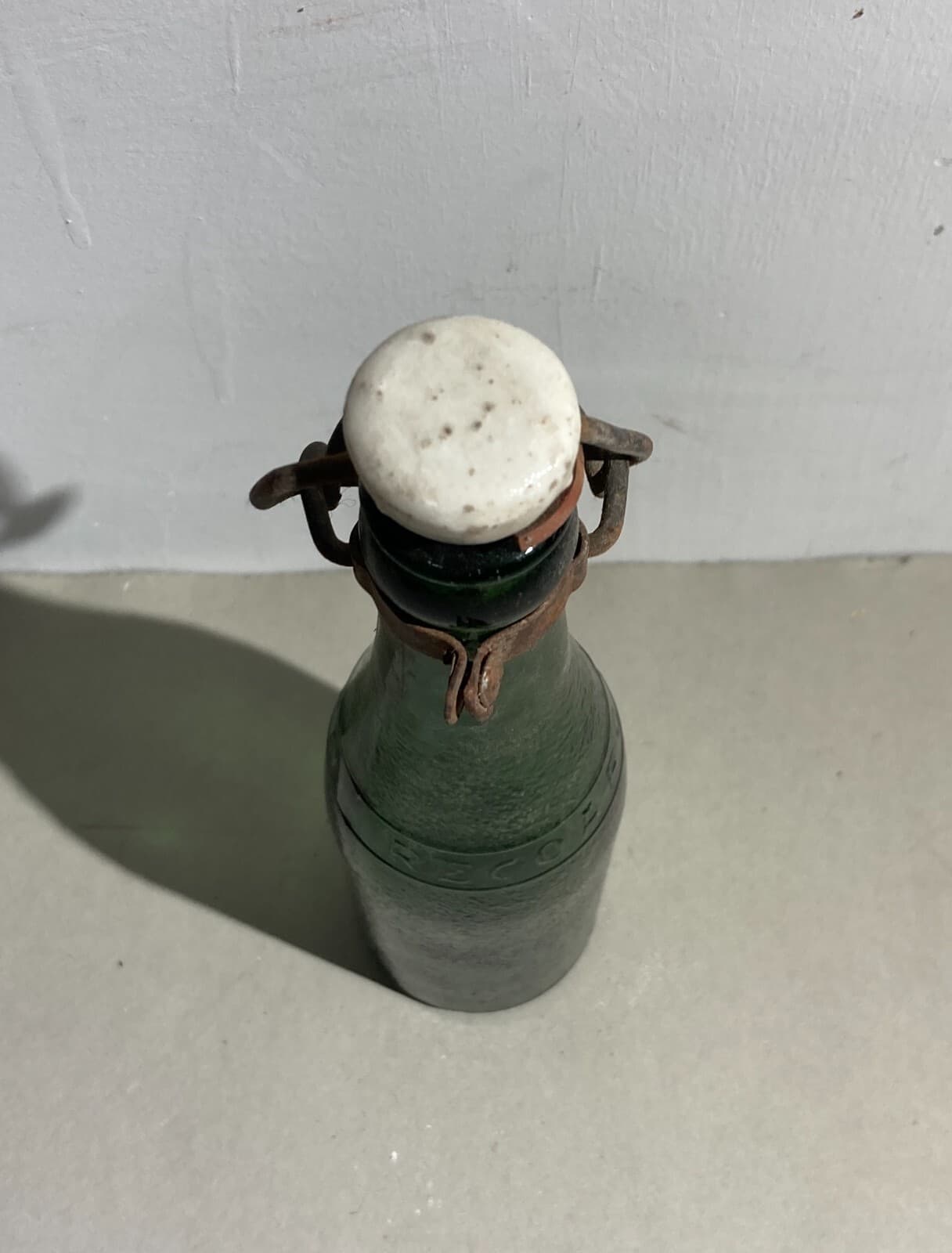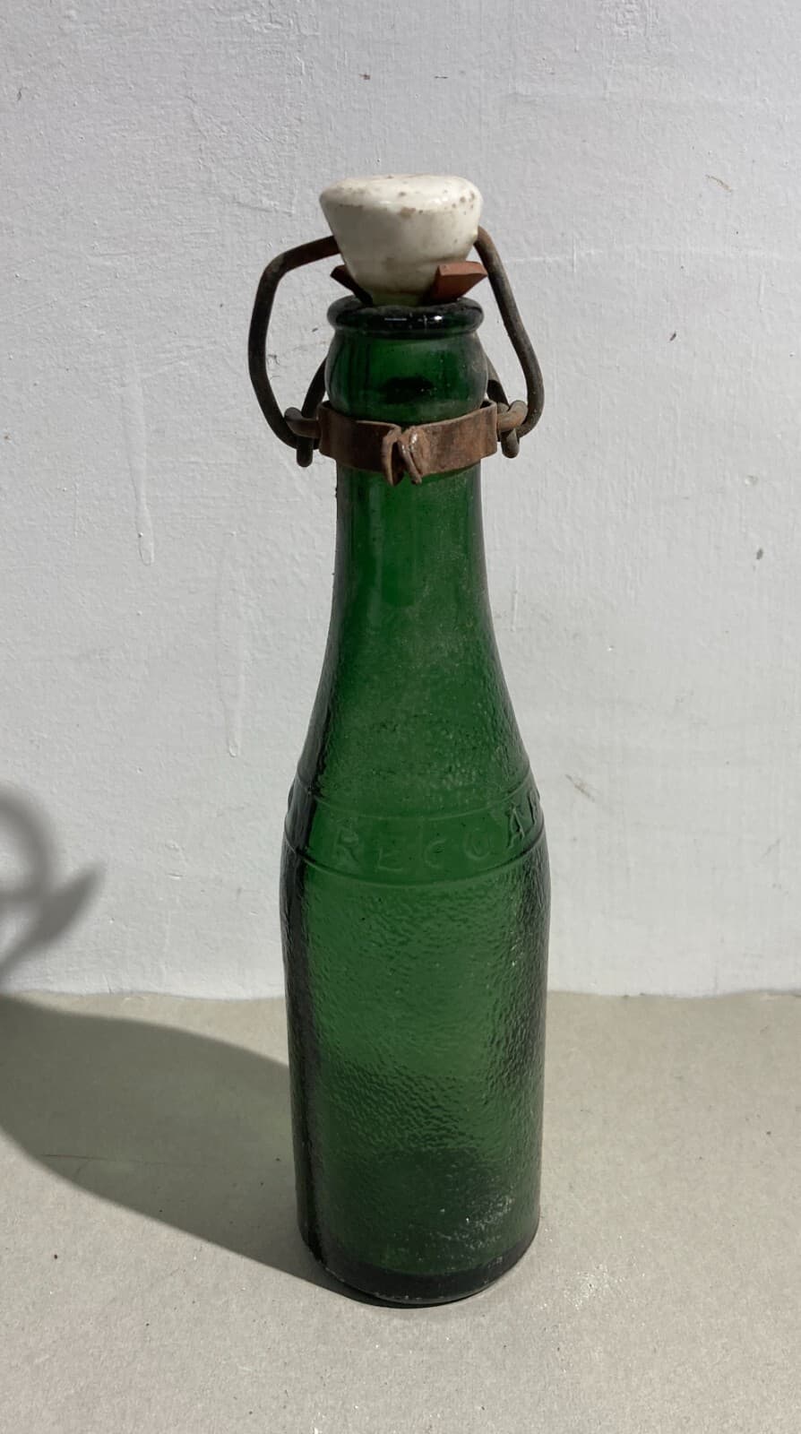Bottiglia Da Collezione In Vetro Verde Pubblicitaria Recoaro Con Tappo In Porcellana