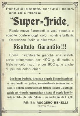 Chimica Coloranti Tessuti Tintoria Prato Benelli: Pubblicità Super Iride Grigio