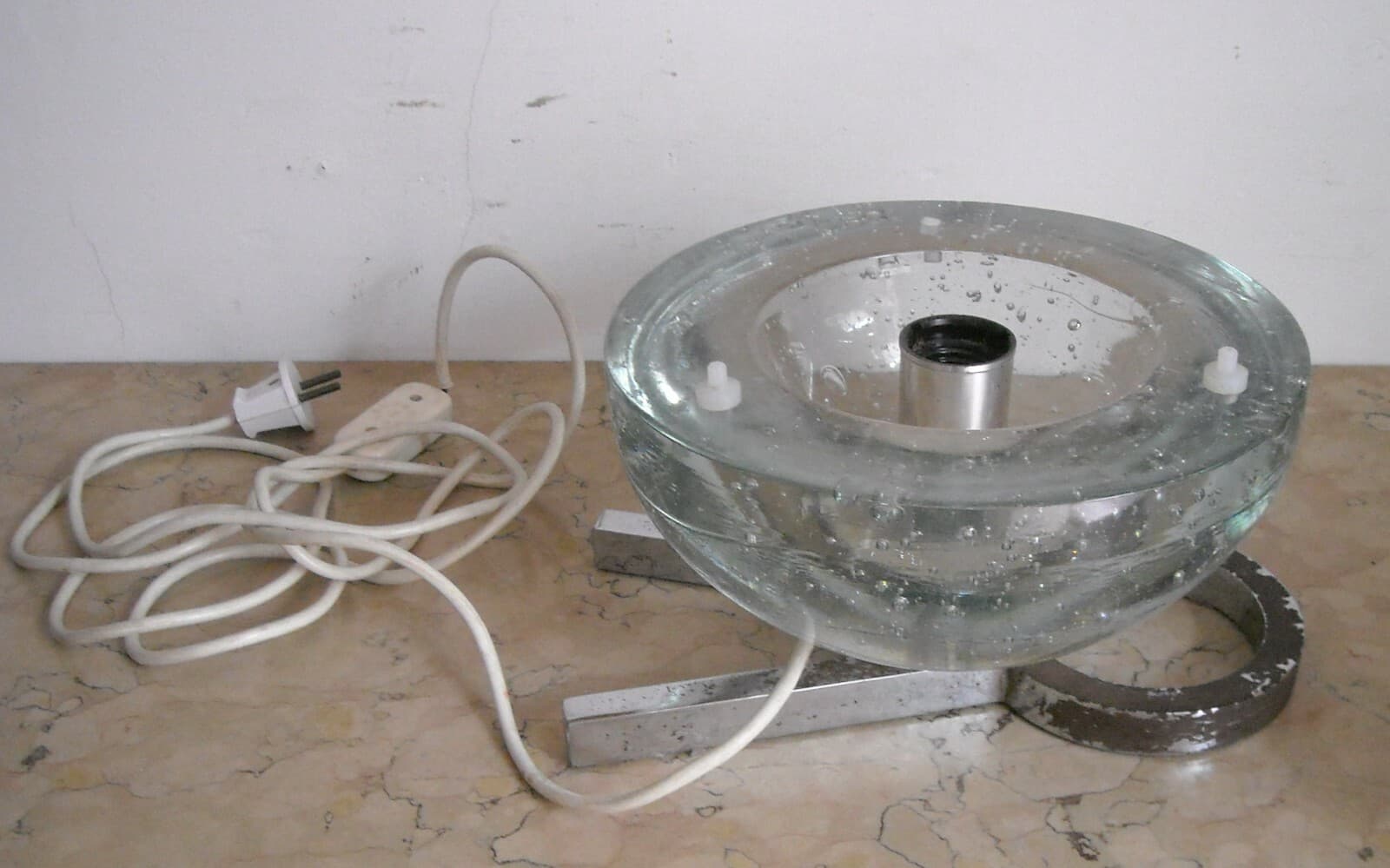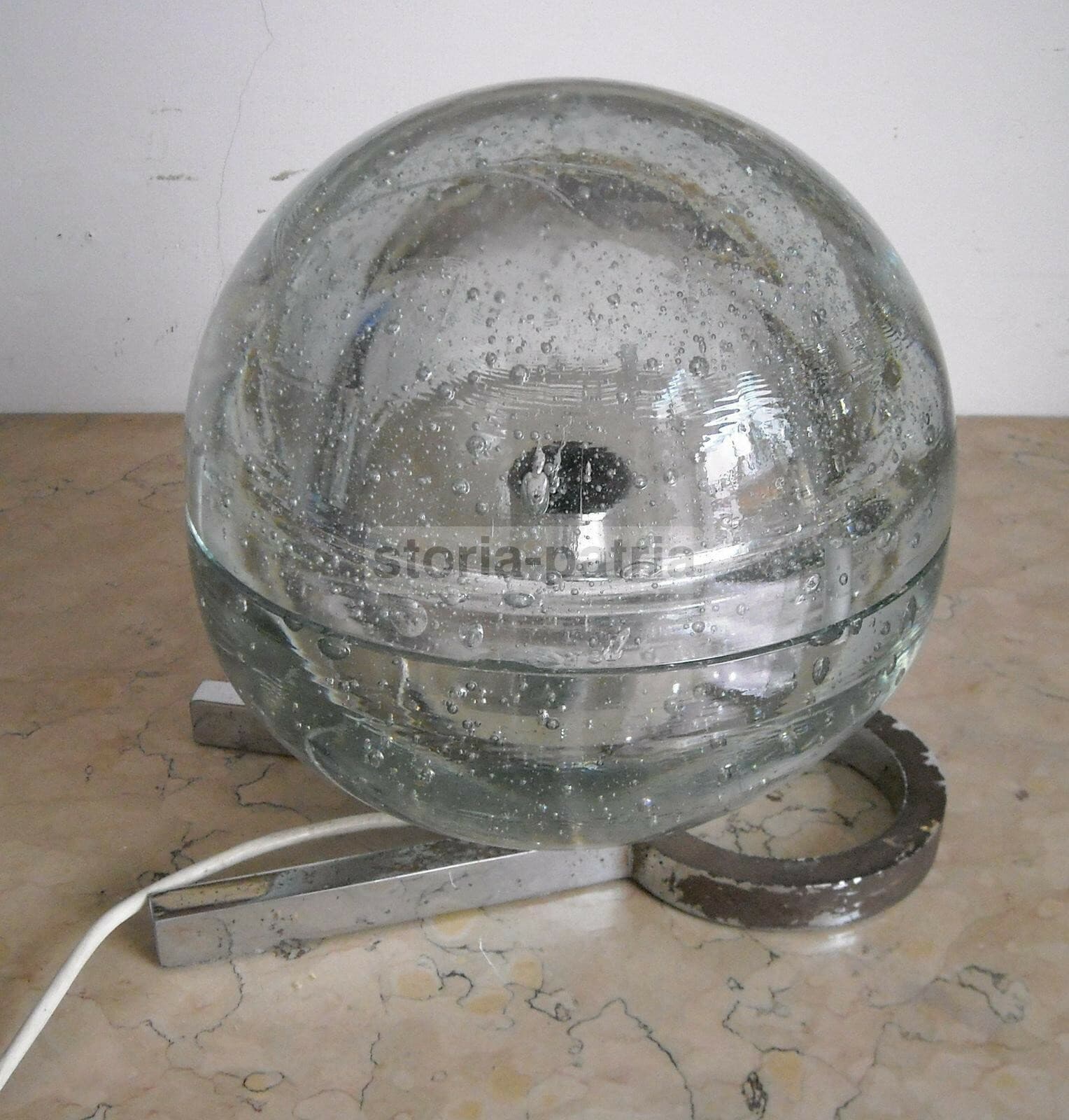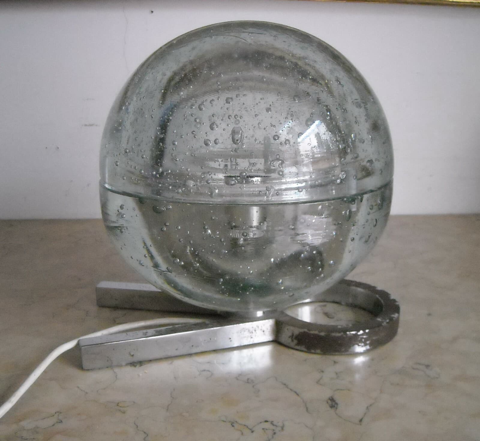 Lampada Da Tavolo In Vetro Massiccio Sferico Design Anni '70