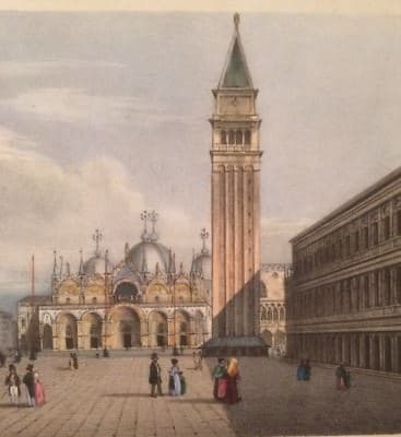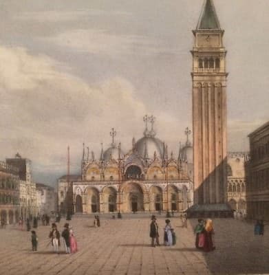 Venezia: Arte E Architettura. Veduta Animata A Colori, Antica Litografia Dell'Ottocento