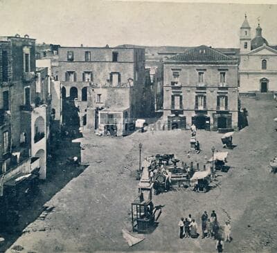 Campania, Pozzuoli. Antica Animata Veduta, Edizione Adinolfi. Piazza Con Statua, 1900 Circa