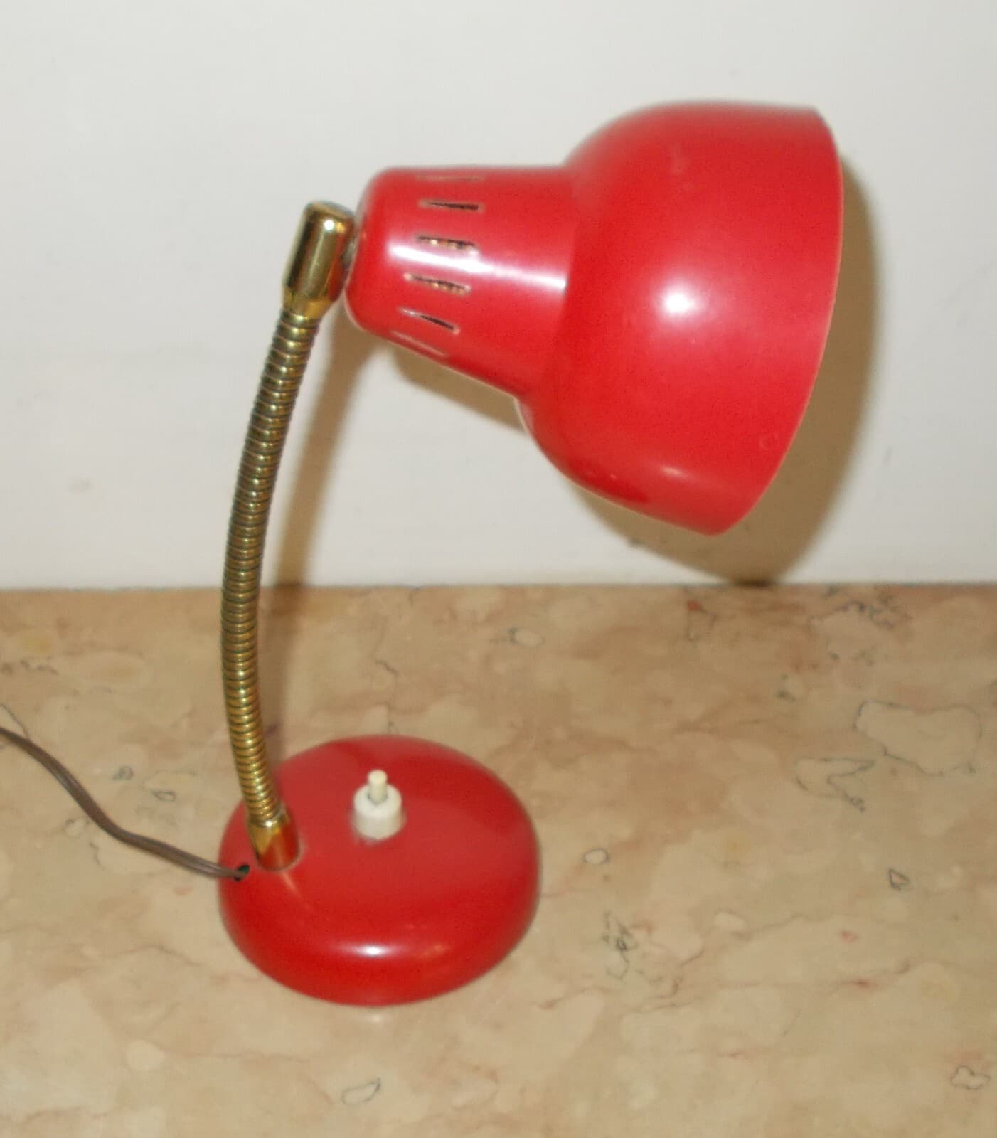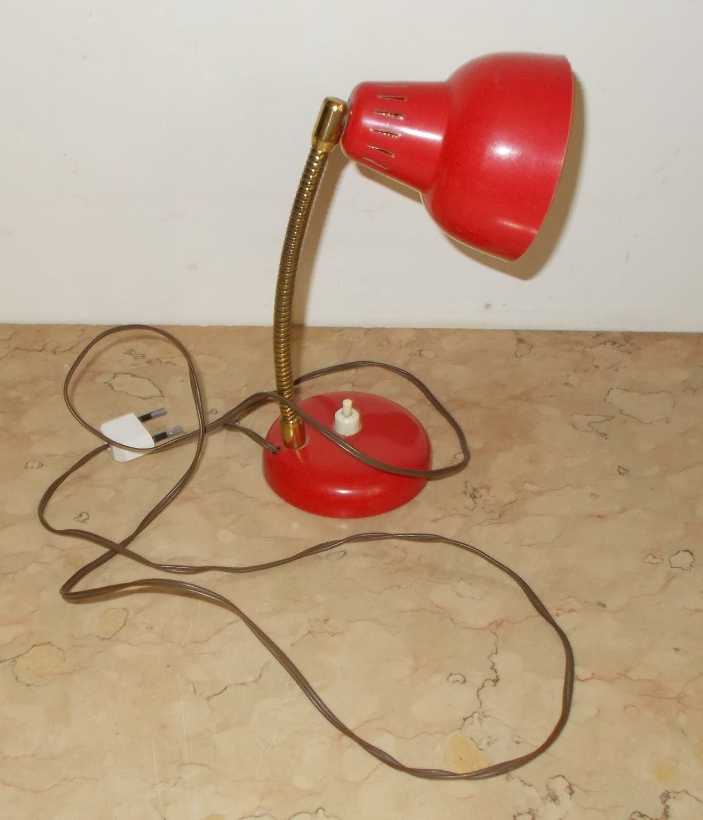 Modernariato, Design: Decorativa Lampada Da Scrivania O Comodino In Plastica Rossa