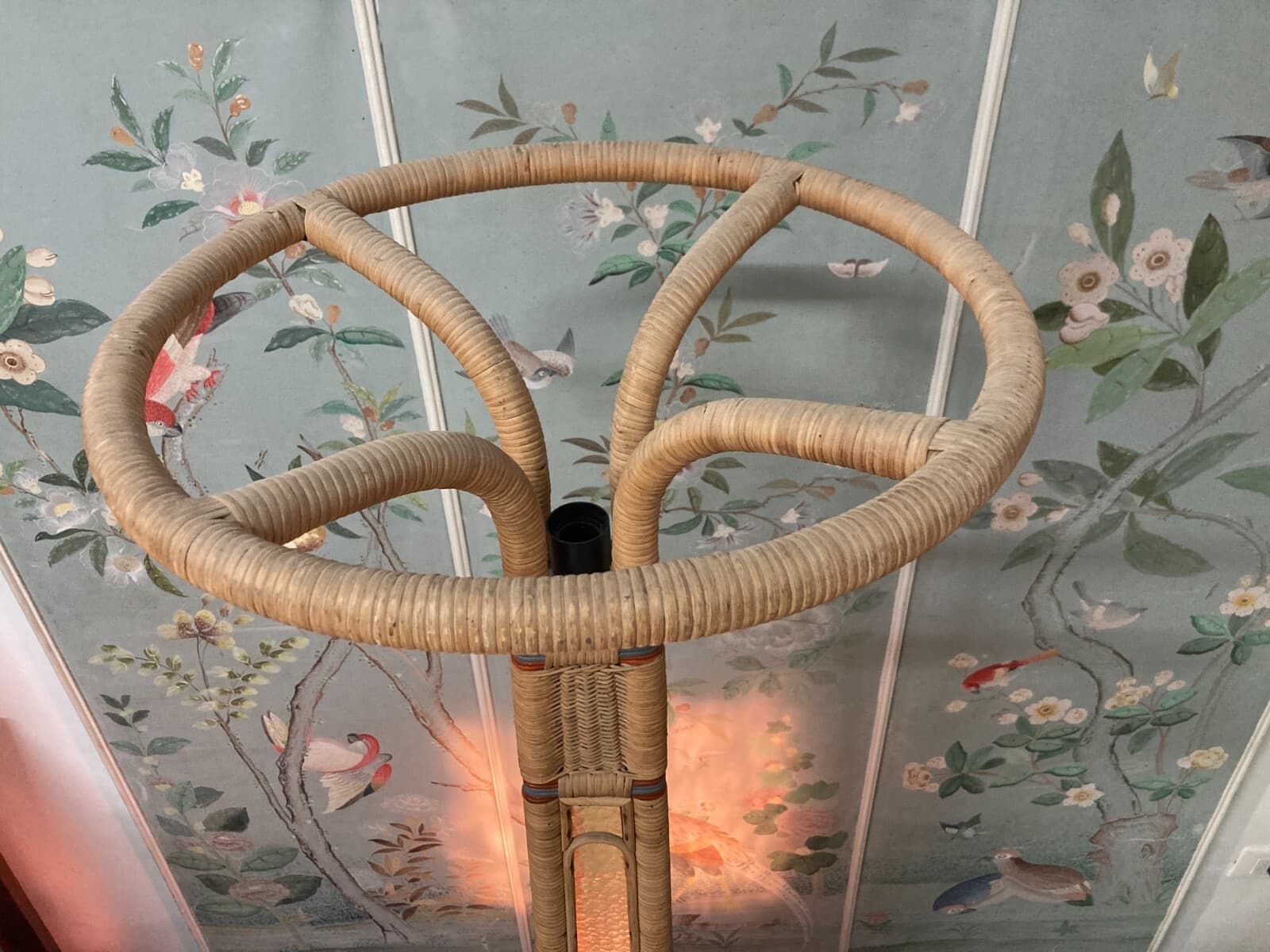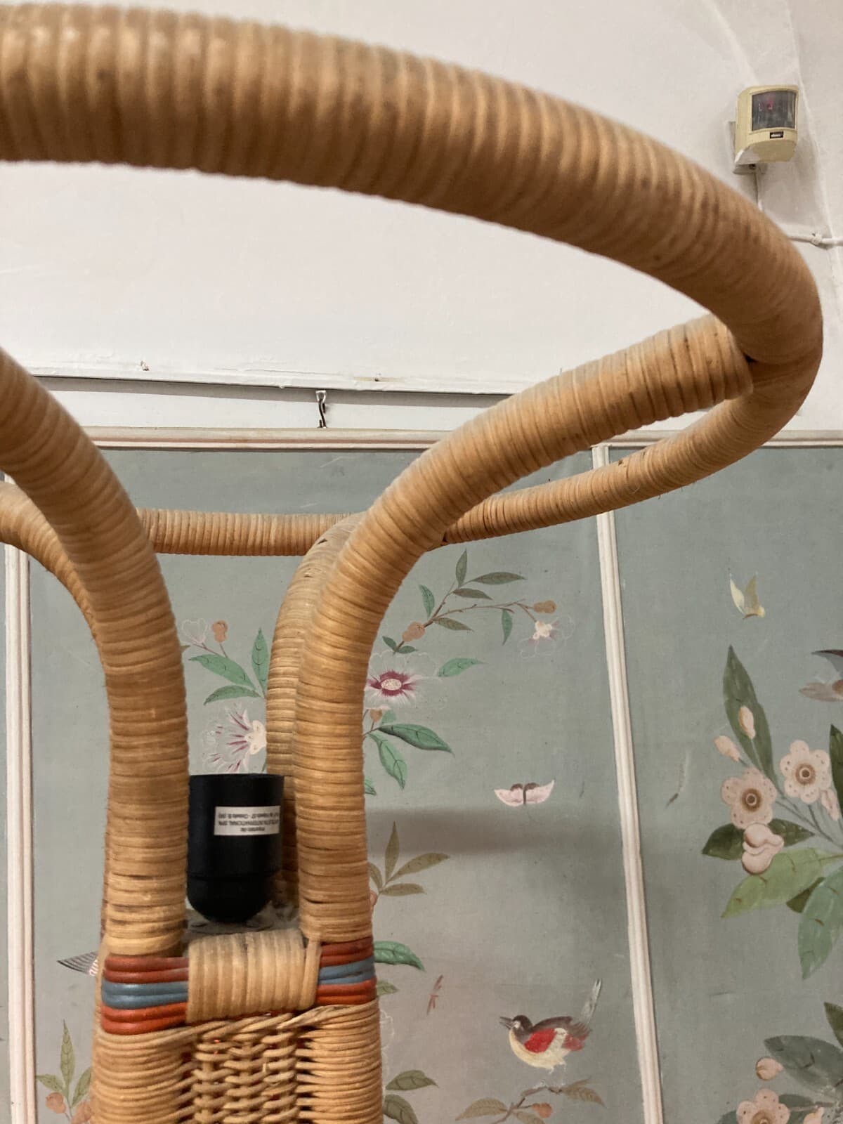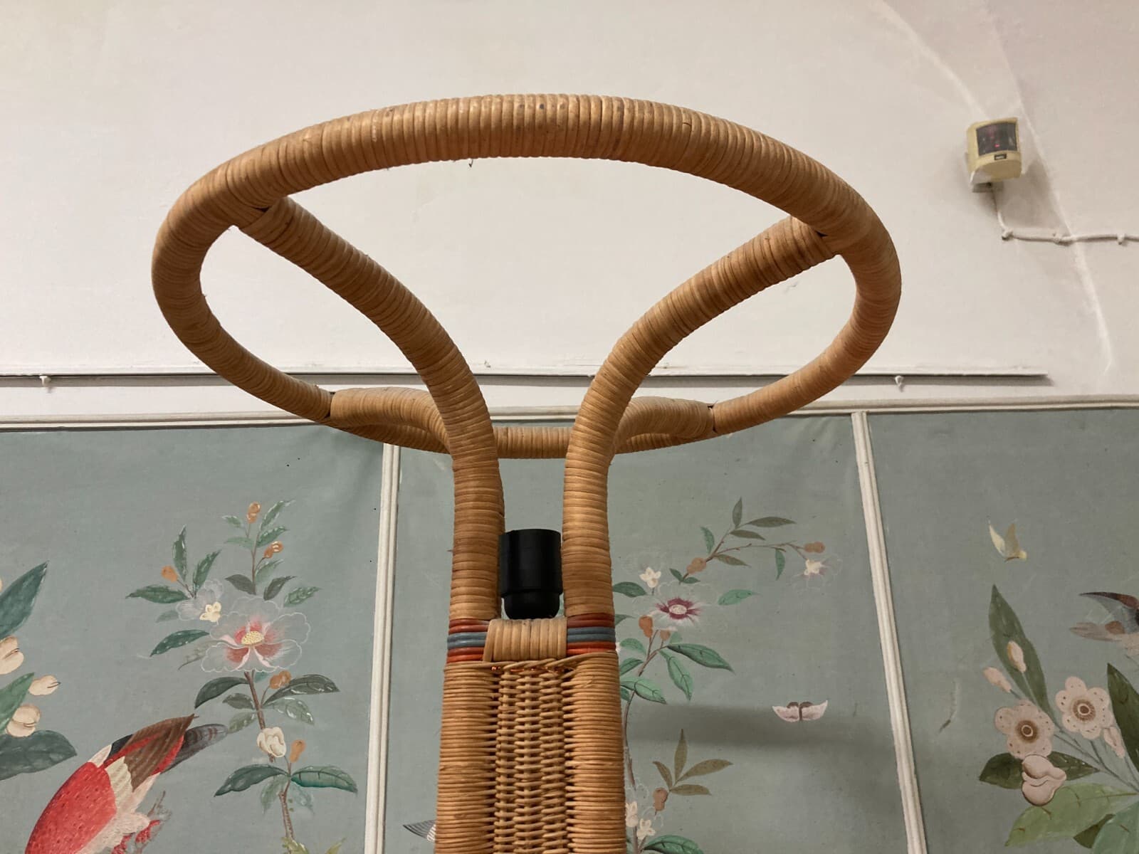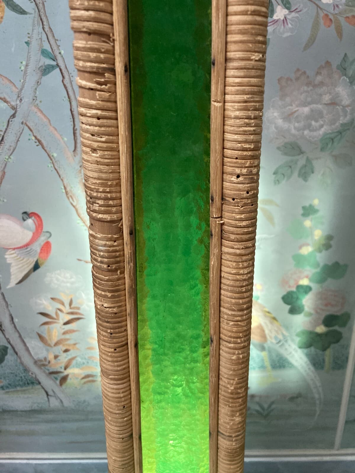 Modernariato, Design, Decorativa Lampada Piantana Con Vetri Colorati In Rattan E Vimini