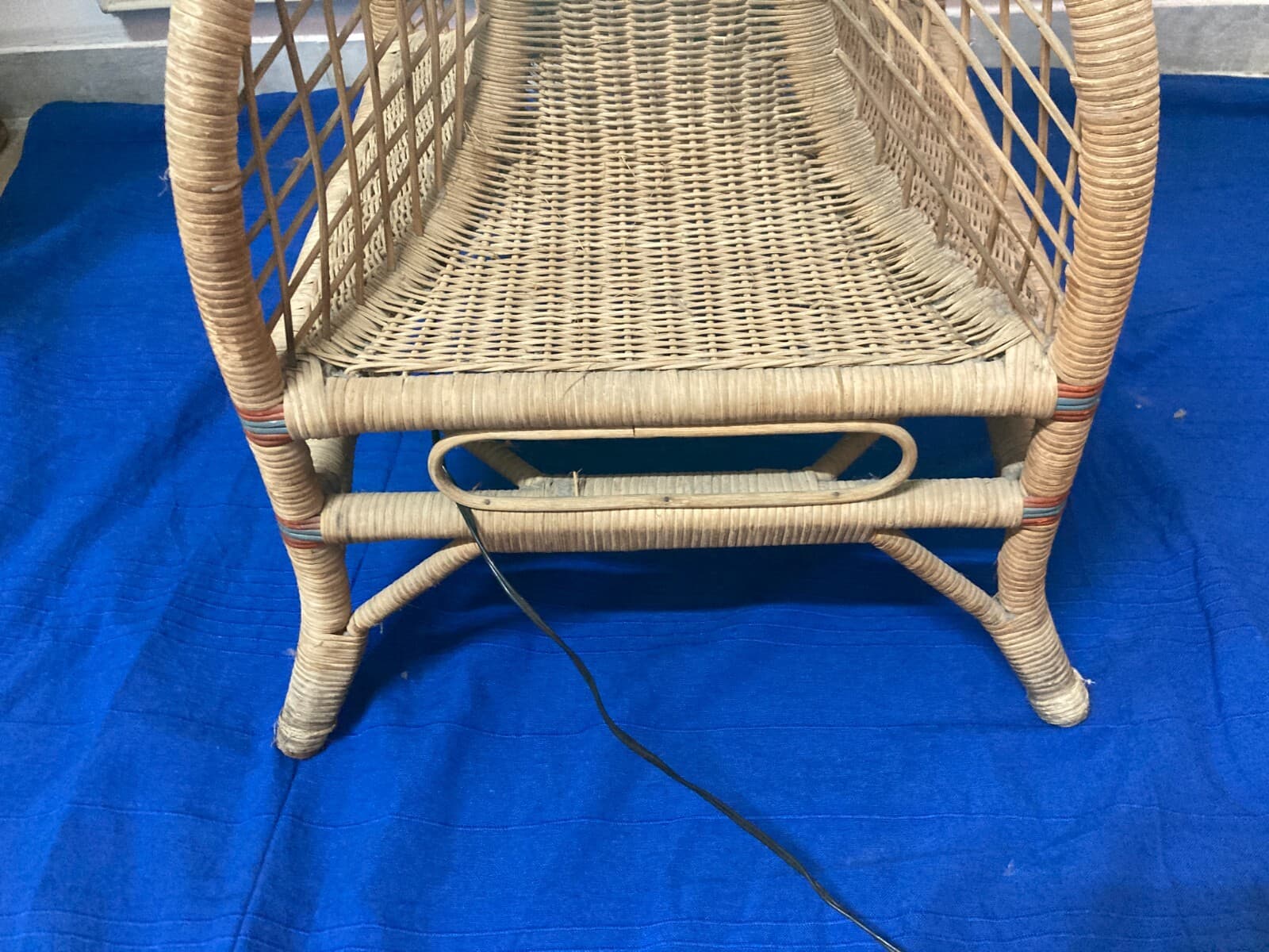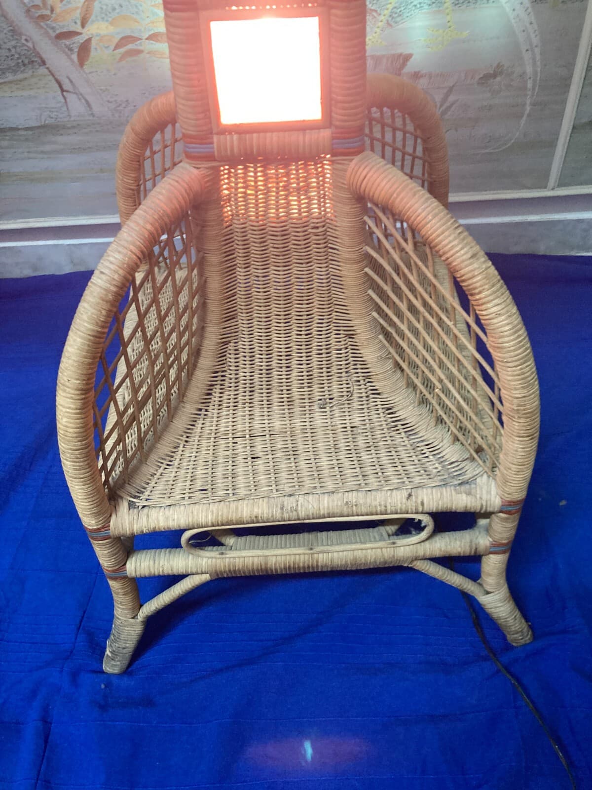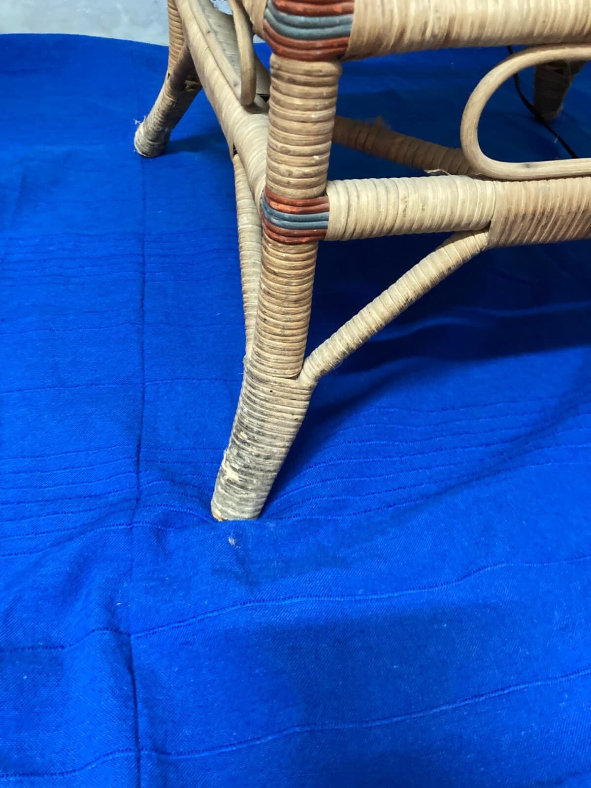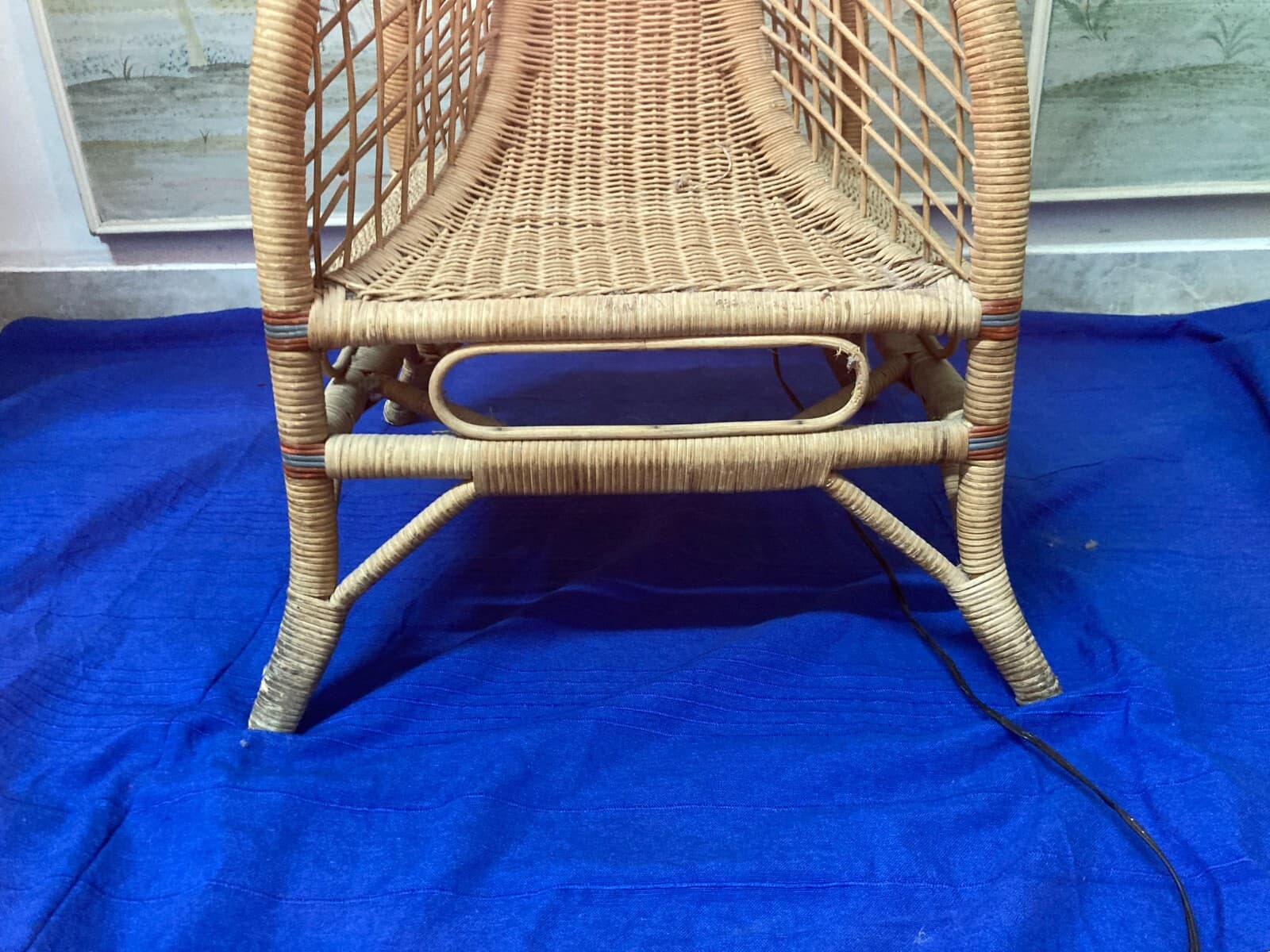 Modernariato, Design, Decorativa Lampada Piantana Con Vetri Colorati In Rattan E Vimini