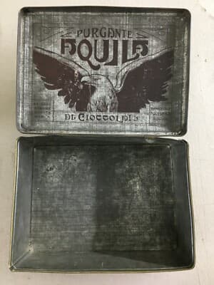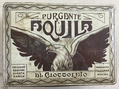 Purgante Aquila Rovigo: Scatola Pubblicitaria In Latta Litografata