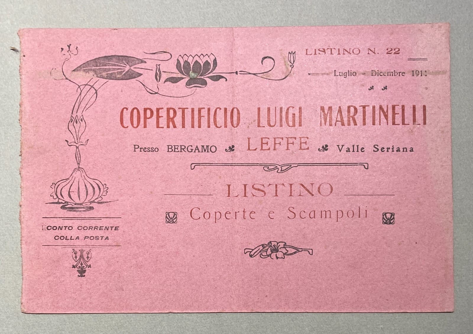 Bergamo Leffe: Copertificio Martinelli, Coperte, Cartoncino Pubblicitario, 1911