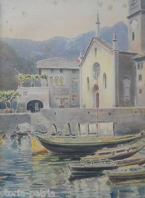 Lago Di Como: Veduta Del Porto Di Torno. Stampa d'Epoca (1929)