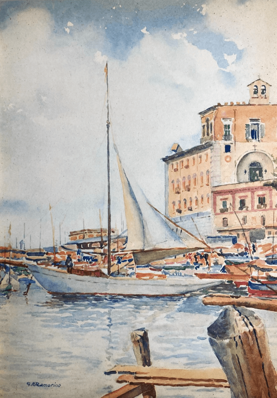 Napoli, Porto Di Mergellina. Stampa A Colori Decorativa Da Collezione. Ramorino