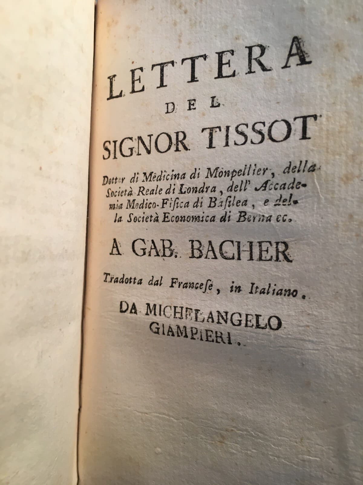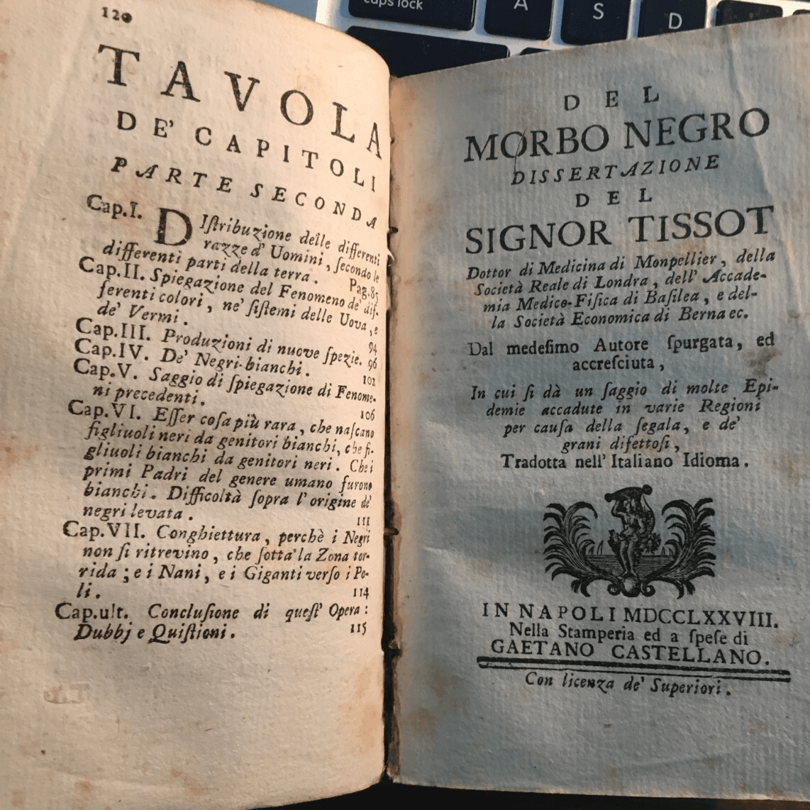 Tissot: Del Morbo Negro Razze Umane Ed Epidemiologia (Napoli, 1778)