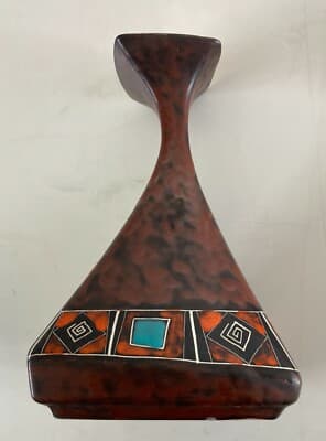 Vaso In Ceramica Stilizzato E Policromo, Design Del Novecento