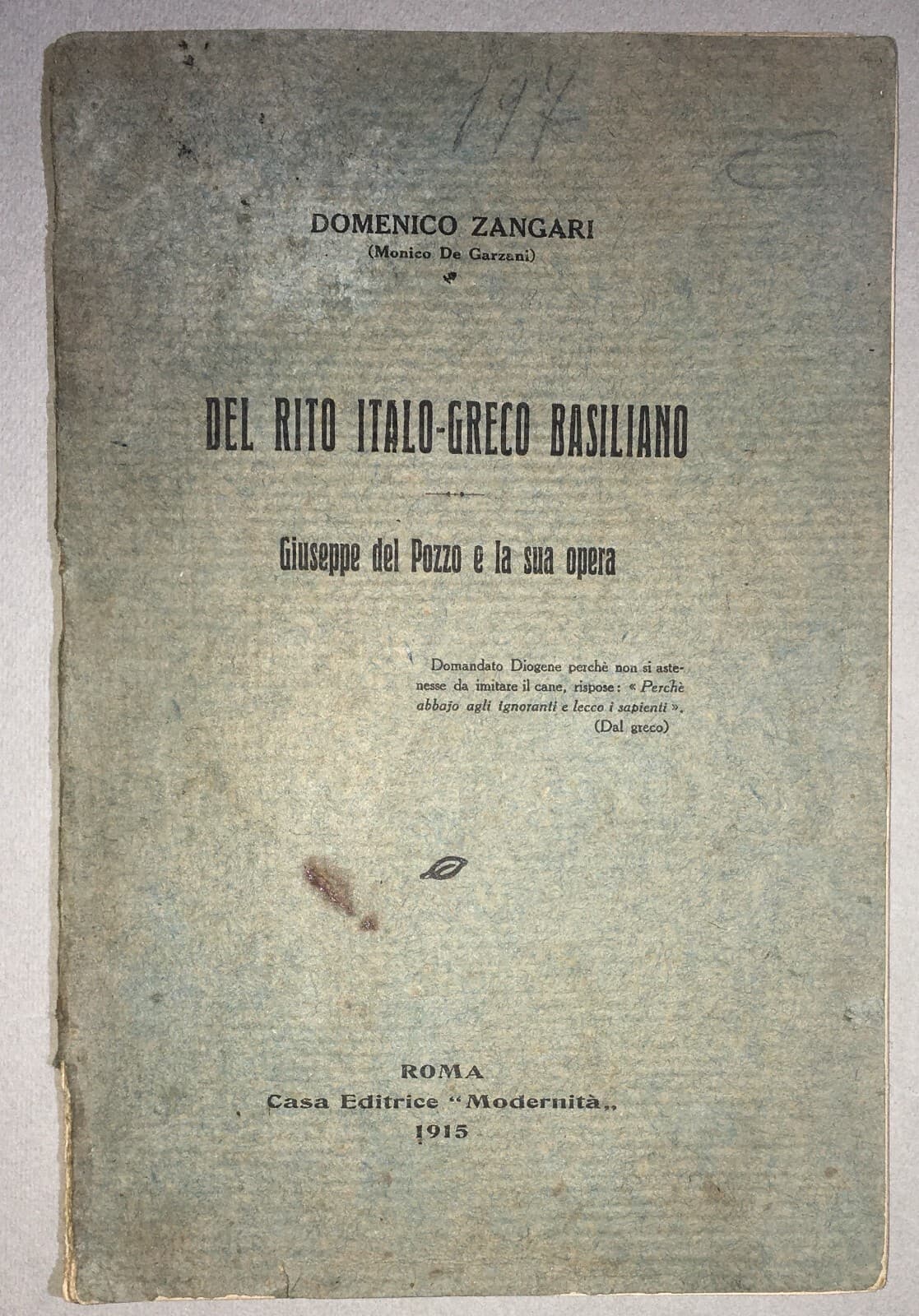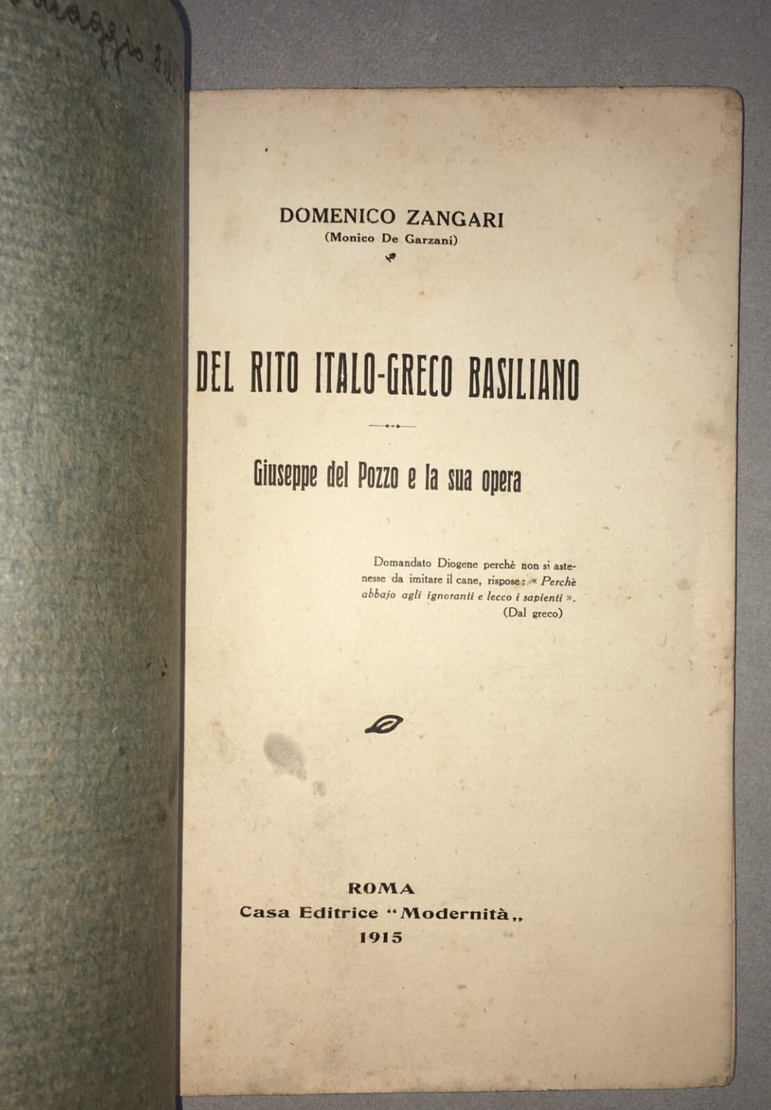 Domenico Zangari, Il Rito Italo Greco Basiliano: Giuseppe Del Pozzo E La Sua Opera (1915)