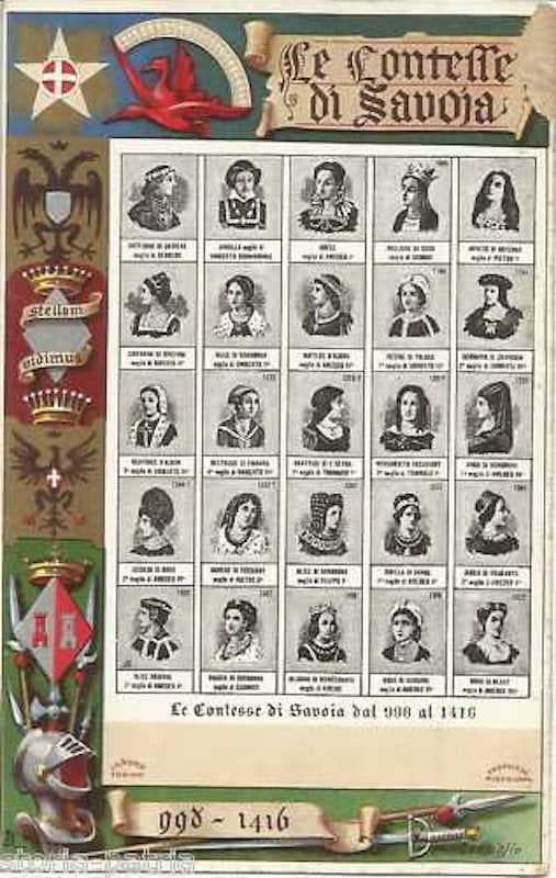Arte Araldica Savoia: Ritratti Nobiliari Sabaudi Contesse Cartolina d'Epoca