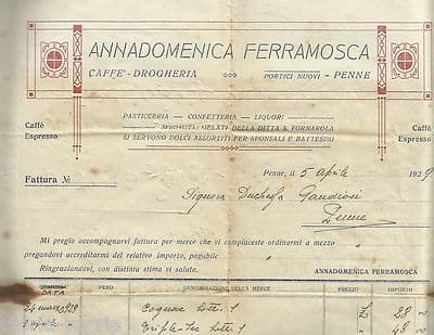Abruzzo, Penne: Ferramosca Alimentari, Caffè E Liquori. Nobiltà Locale: Gaudiosi, 1929