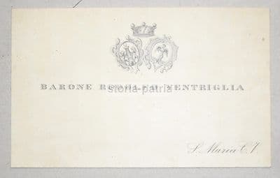 Araldica Inusuale: Raro Antico Biglietto Da Visita Del Barone Ventriglia, Campania
