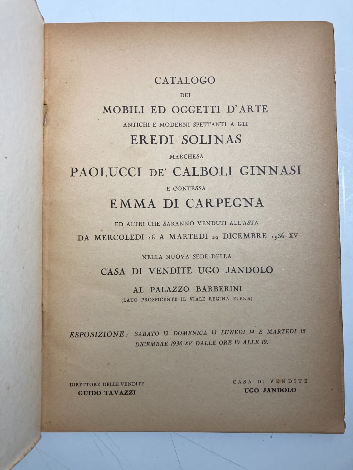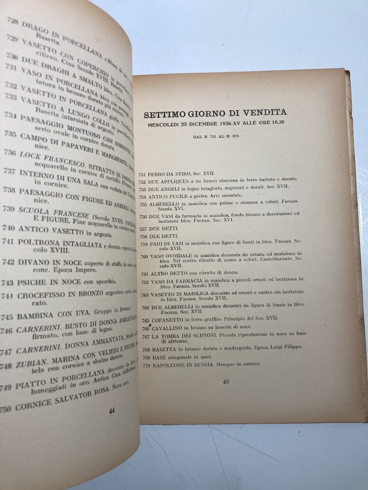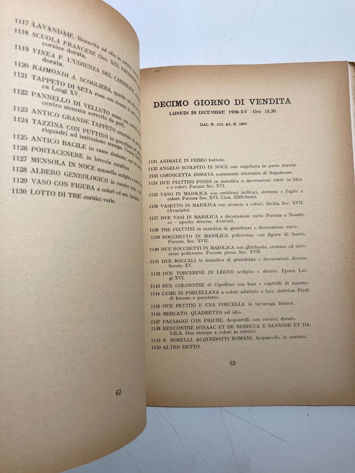 Arte, Aste, Galleria Giacomini, Palazzo Lante, Vendita Marchesa Torrigiani, 1922