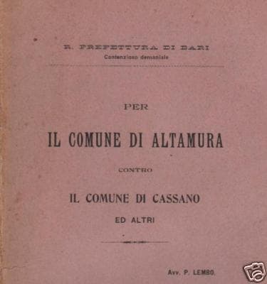 Puglia, Altamura, Cassano: Giuridica, Contenzioso Demaniale De Luca, Netti, Lembo, 1903