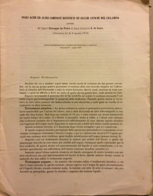 Botanica, Chimica, Ciclamino, Napoli: De Petra E De Luca, 1873. Antica Memoria.