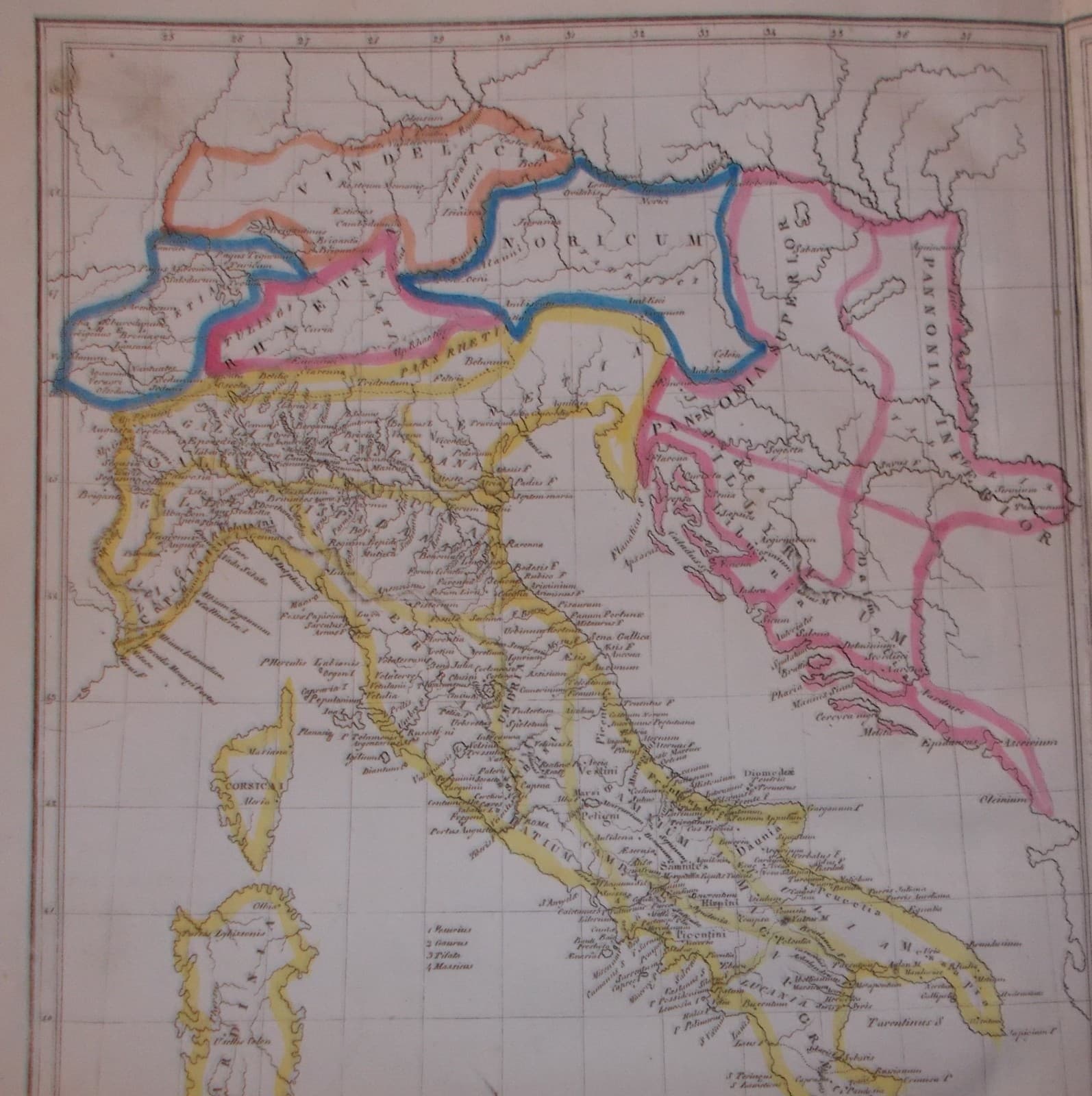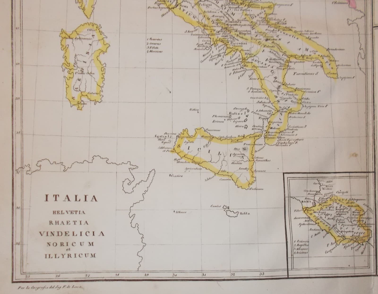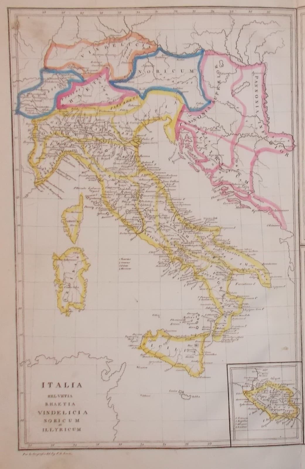 Antica Cartografia: Italia, Sicilia, Sardegna, Corsica, Svizzera, Illiria, Malta, Gallia