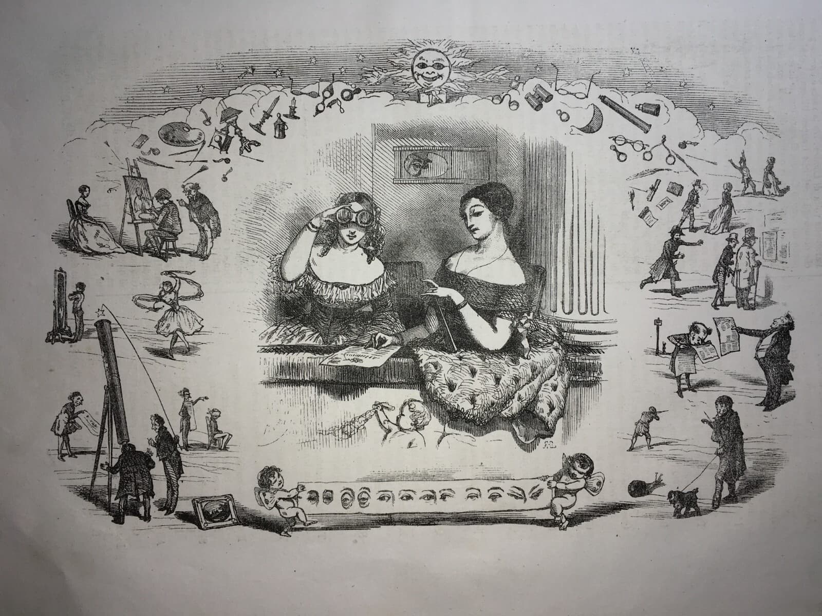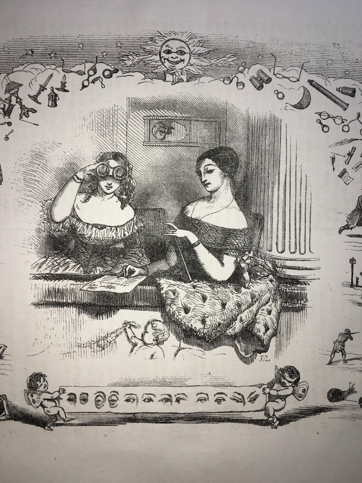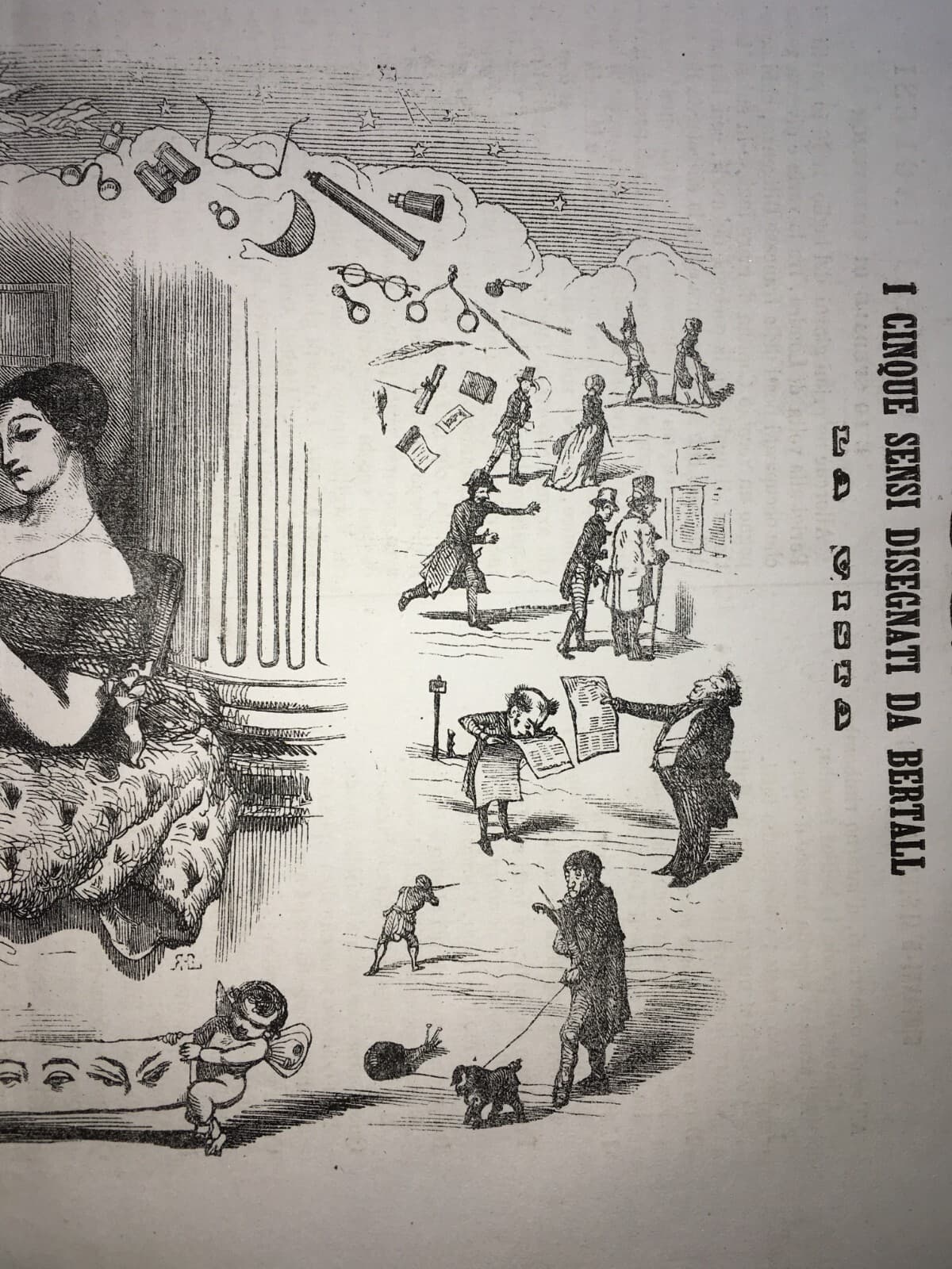 Arte, Umorismo, Caricatura: Illustrazione Antica Di Bertall I Sensi: La Vista, Occhio, Lettura