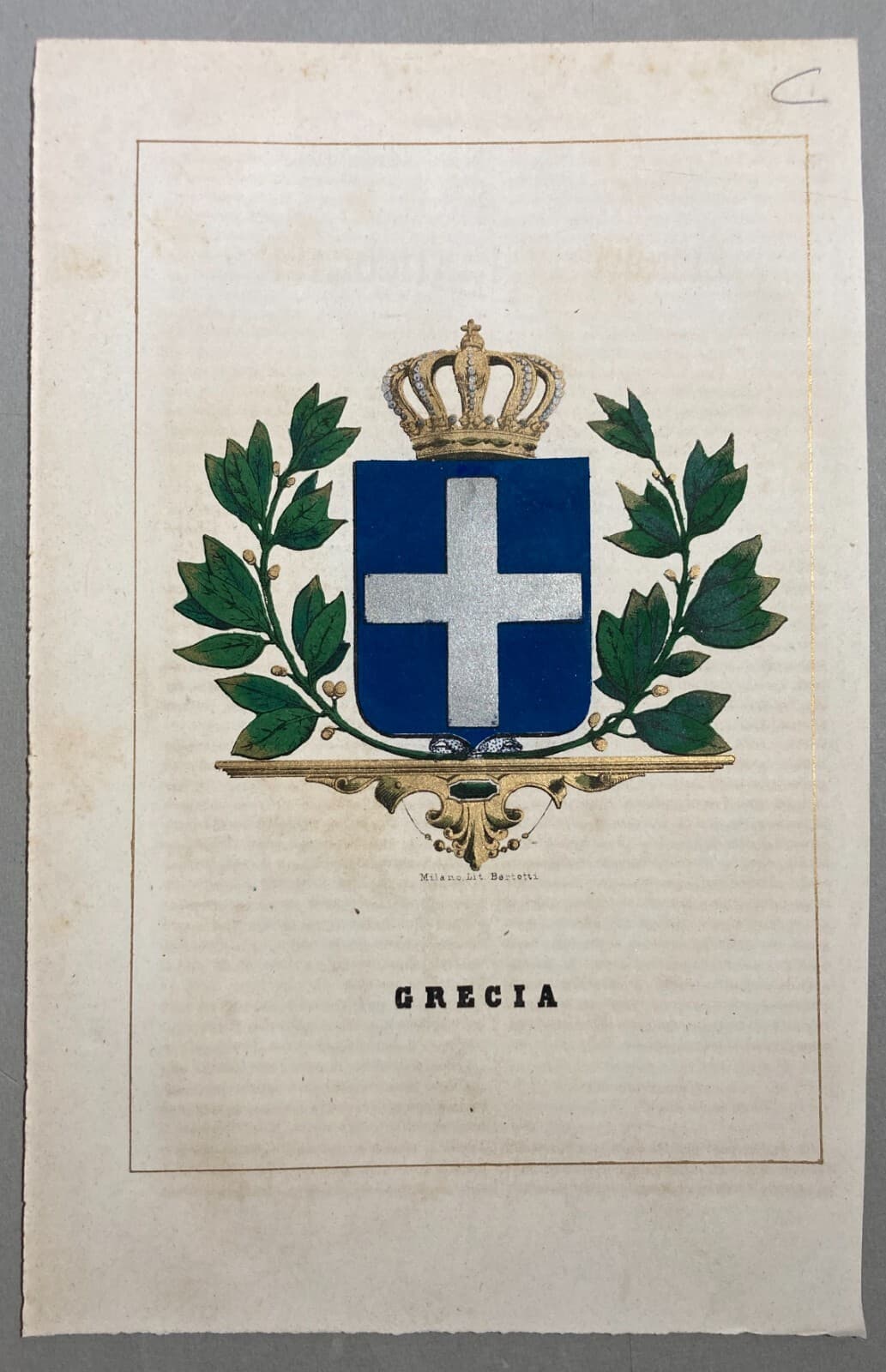 Araldica Grecia Antica Stampa A Colori Litografia Bertotti Milano
