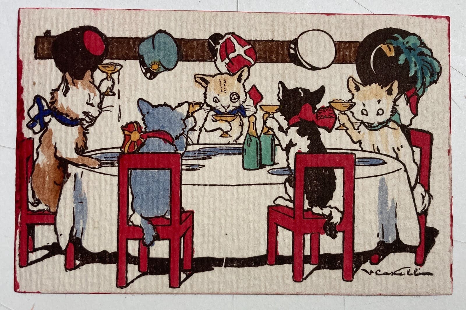 Cartolina Umoristica Con Gatti A Tavola Di Vincenzina Castelli