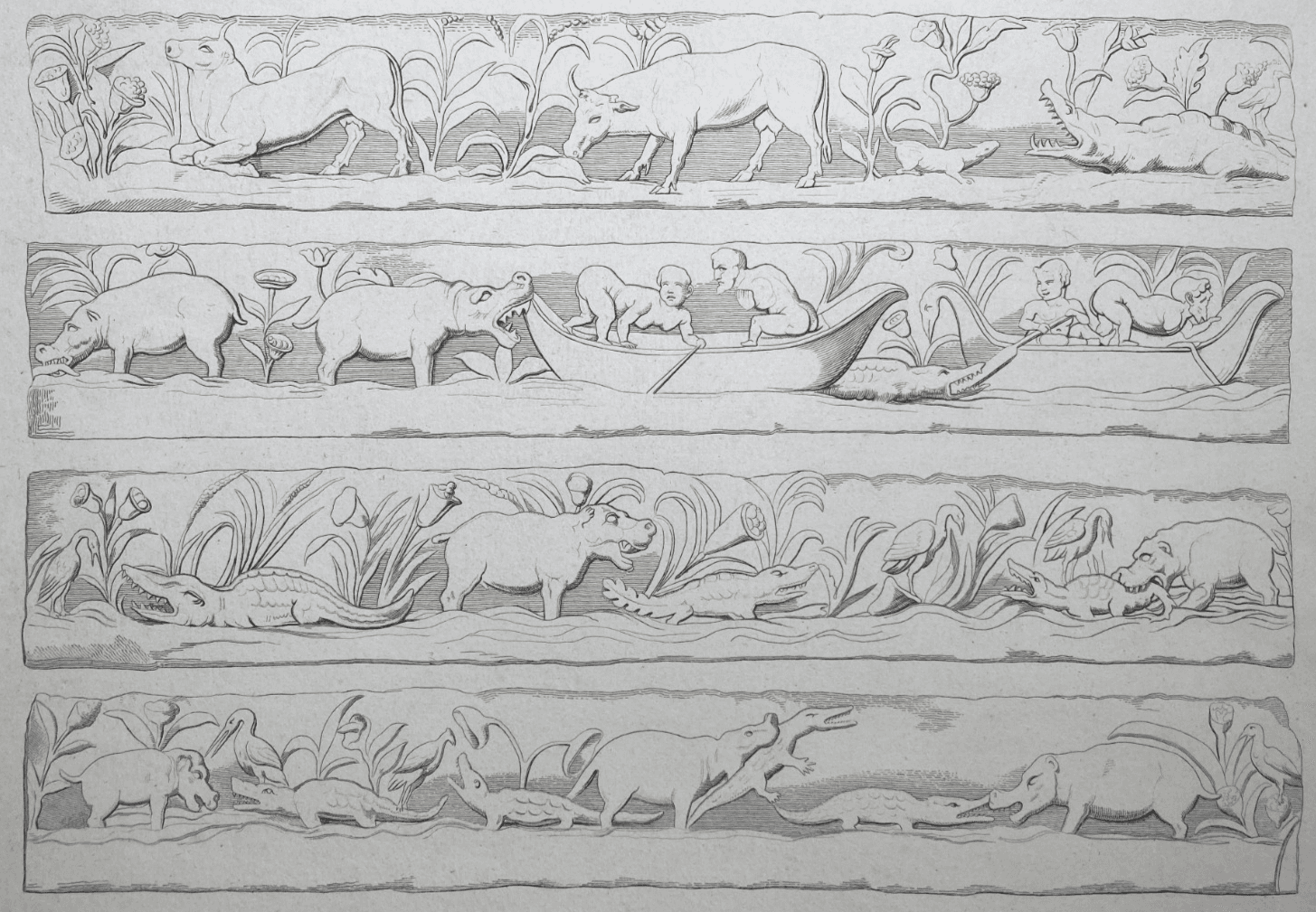 Scena Mitologica Con Bestiario E Figure In Barca: Incisione Di Filippo Sirletti