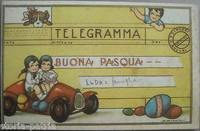 Arte Per Bambini E Illustratori d'Epoca: Cartolina Di Pasqua A Forma Di Telegramma