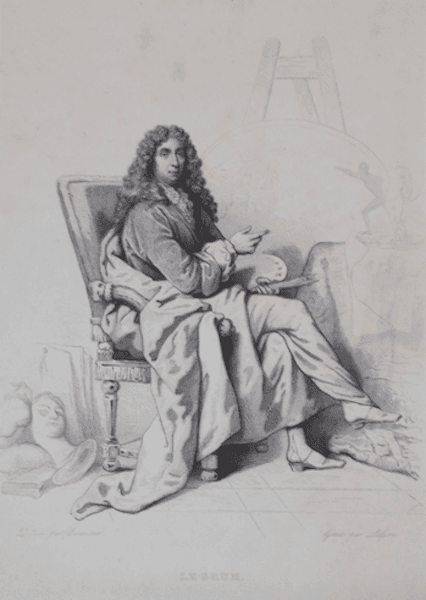Ritratto Dell'Artista Charles Lebrun, Incisione Originale Di Lefevre Da Decaisne, Metà XIX Secolo
