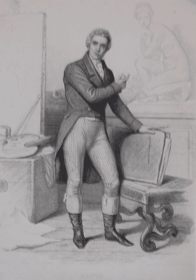 Arte Antica, Ritratto Dell'Artista David: Incisione Su Disegno Di Beranger, XIX Secolo