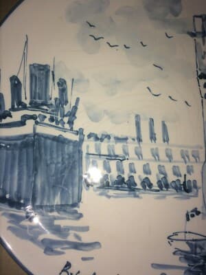 Savona, Albatro: Veduta Decorativa, Paesaggio Con Nave. Piatto Da Collezione Firmato