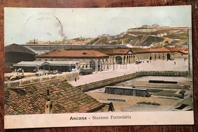 Marche, Ancona, Stazione Ferroviaria, Antica Veduta A Colori, Rara Cartolina